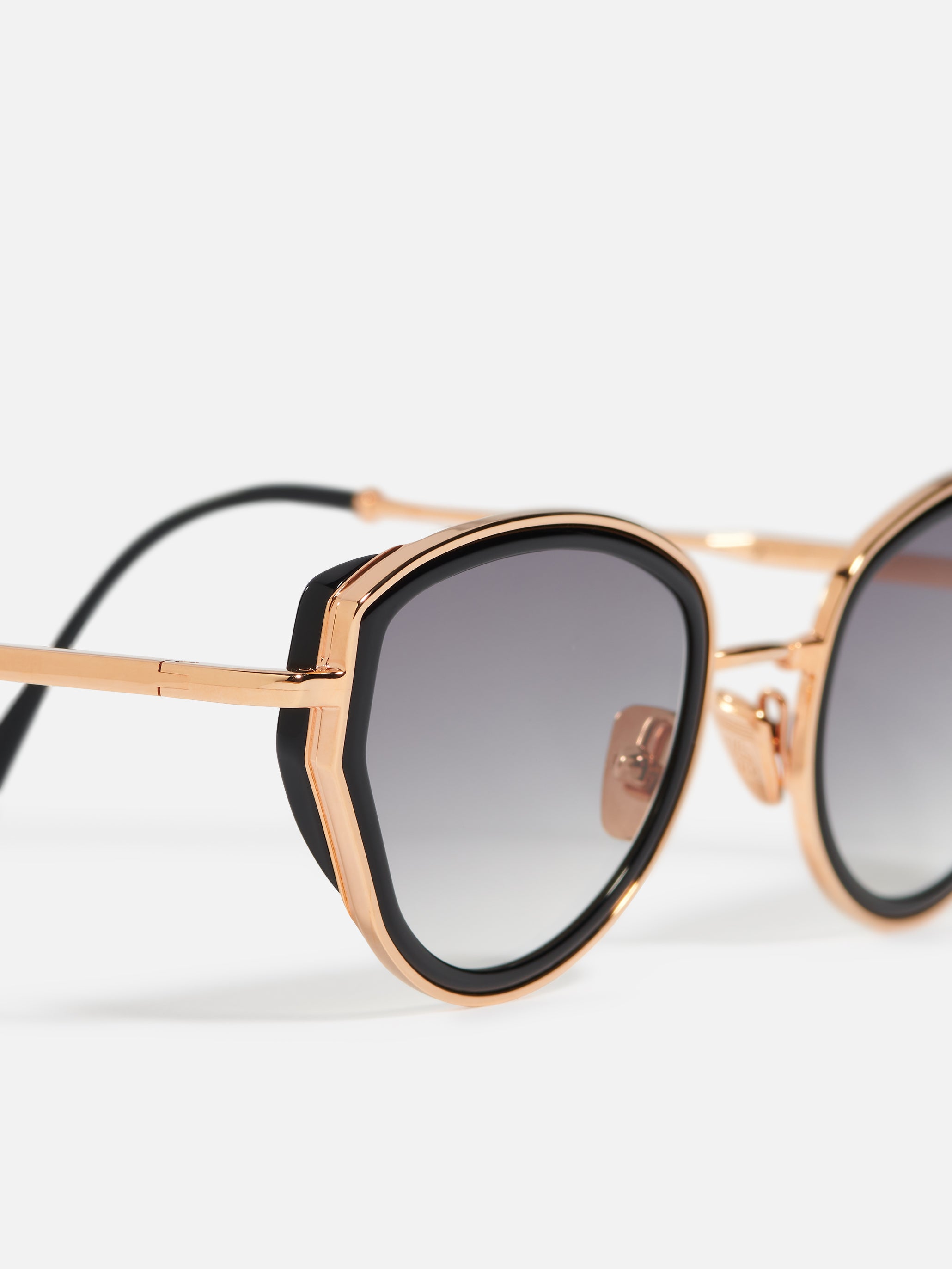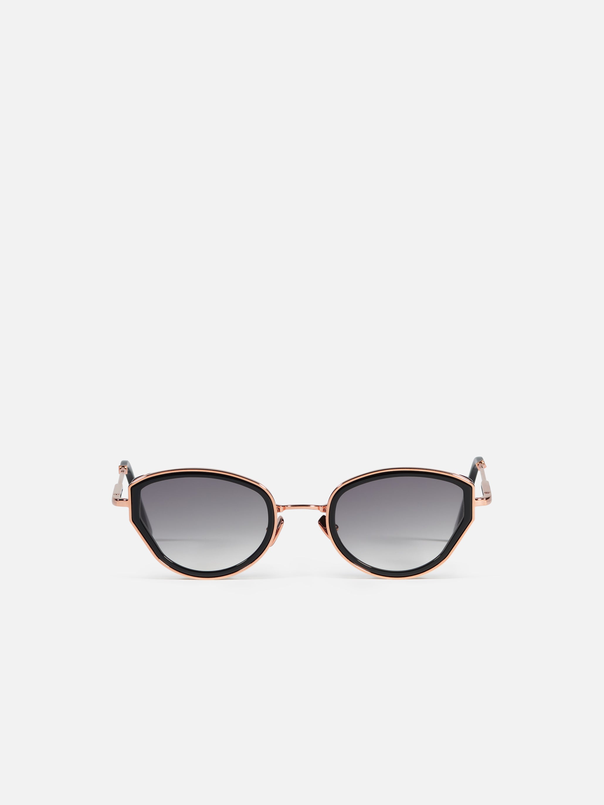 The metal corewire is made of stainless steel frame with a rose gold plating (5µ, with a jeweler’s stamp inside the temple). Temple tips and eye rims in infinite black acetate.