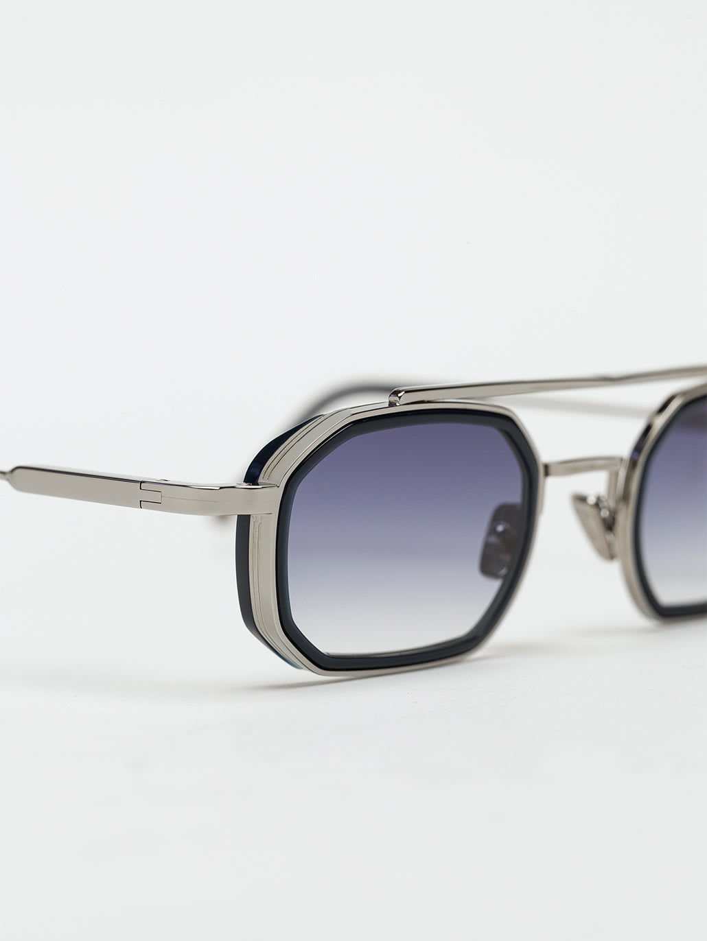The metal corewire is made of stainless steel frame with ruthenium plating (3µ). Temple tips and eye rims in navy blue acetate embossed with the John Dalia signature.