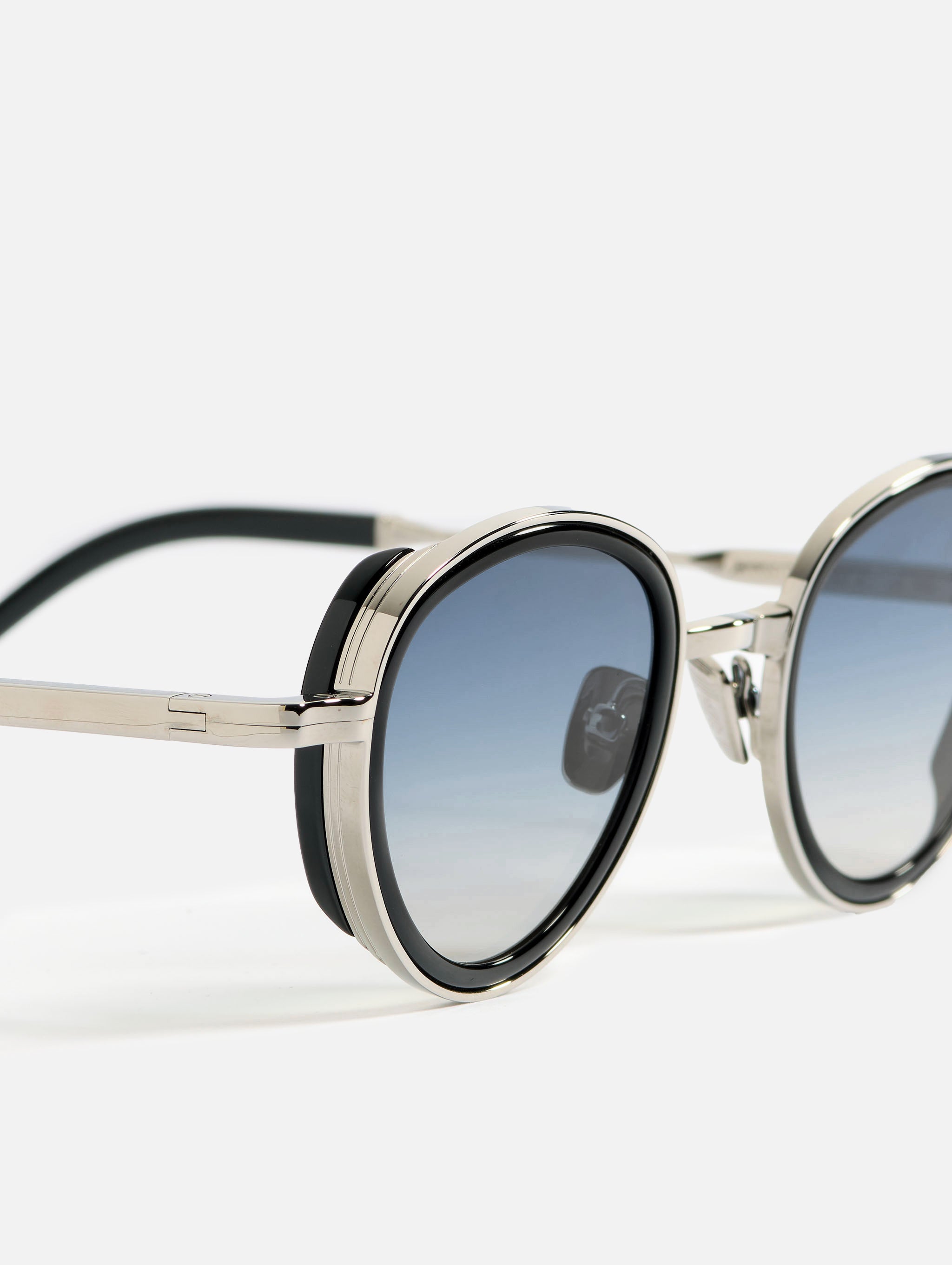 The metal corewire is made of stainless steel frame with a ruthenium plating (3µ, with a jeweler’s stamp inside the temple). Temple tips and eye rims in infinite black acetate.