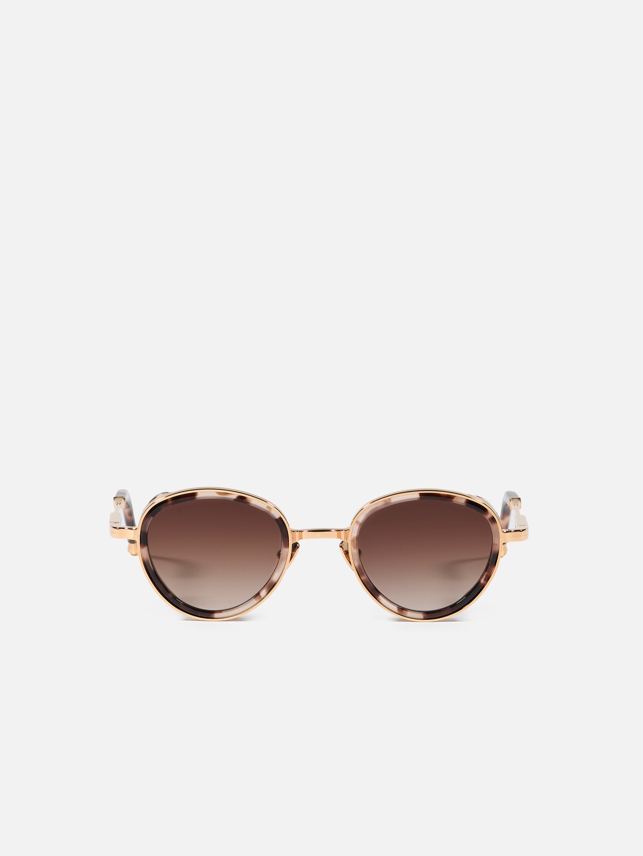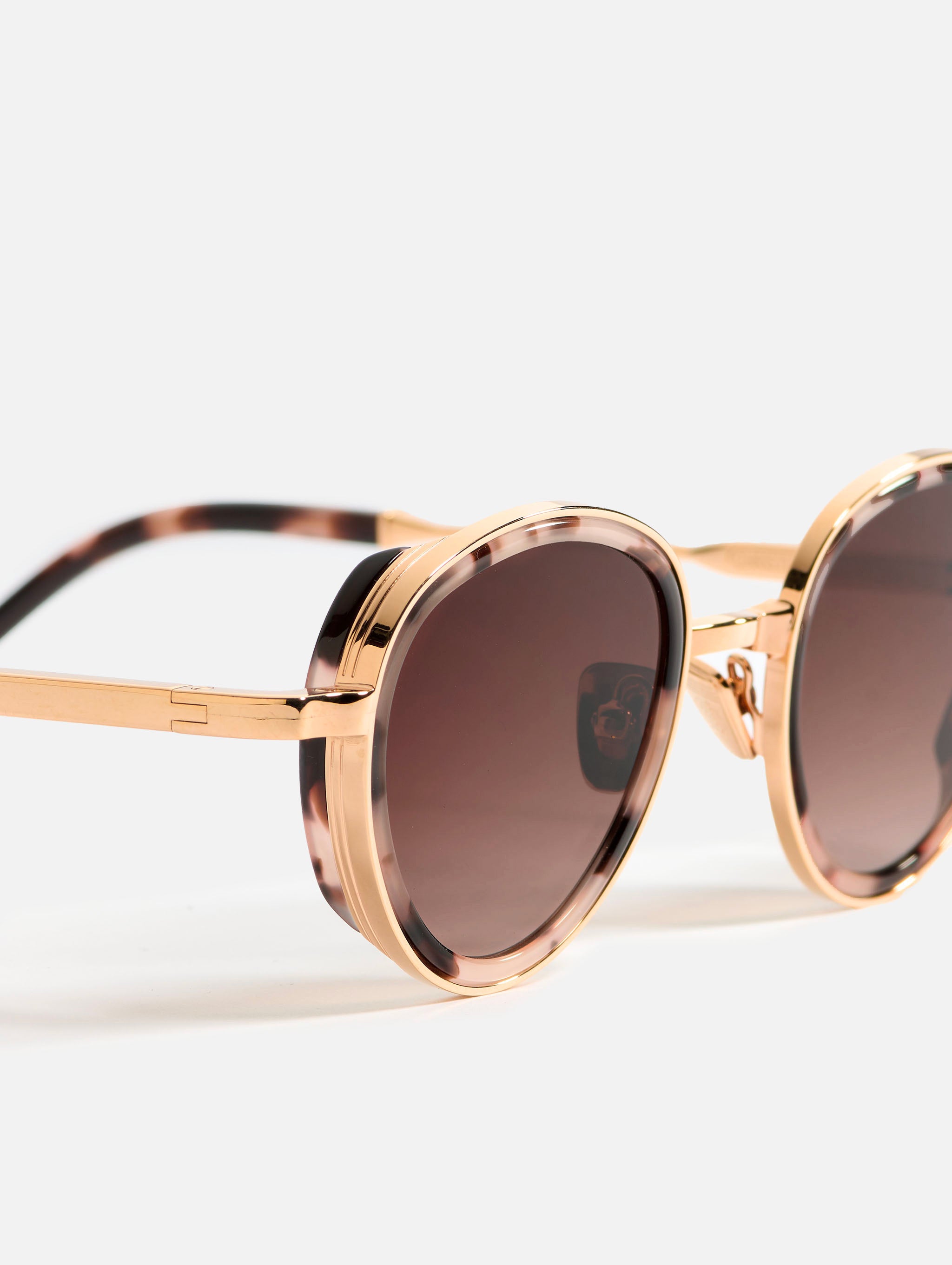 The metal corewire is made of stainless steel frame with a rose gold plating (5µ, with a jeweler’s stamp inside the temple). Temple tips and eye rims in pink tortoise acetate.