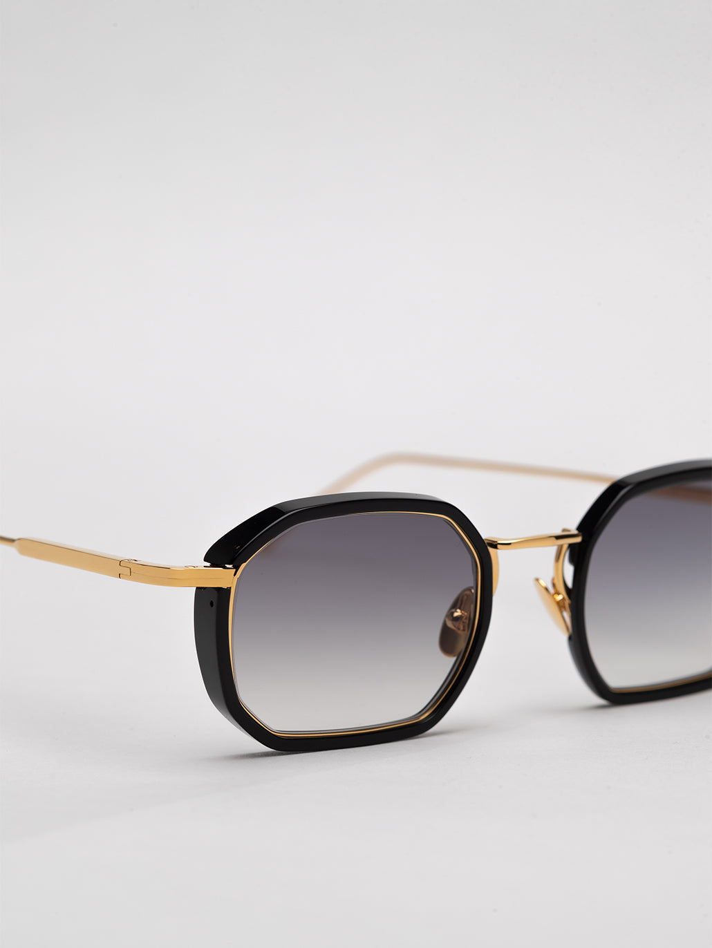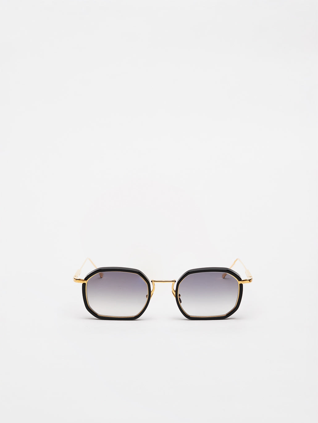 The metal corewire is made of stainless steel frame with a yellow gold plating (5µ, with a jeweler’s stamp inside the temple). Temple tips and eye rims in black acetate