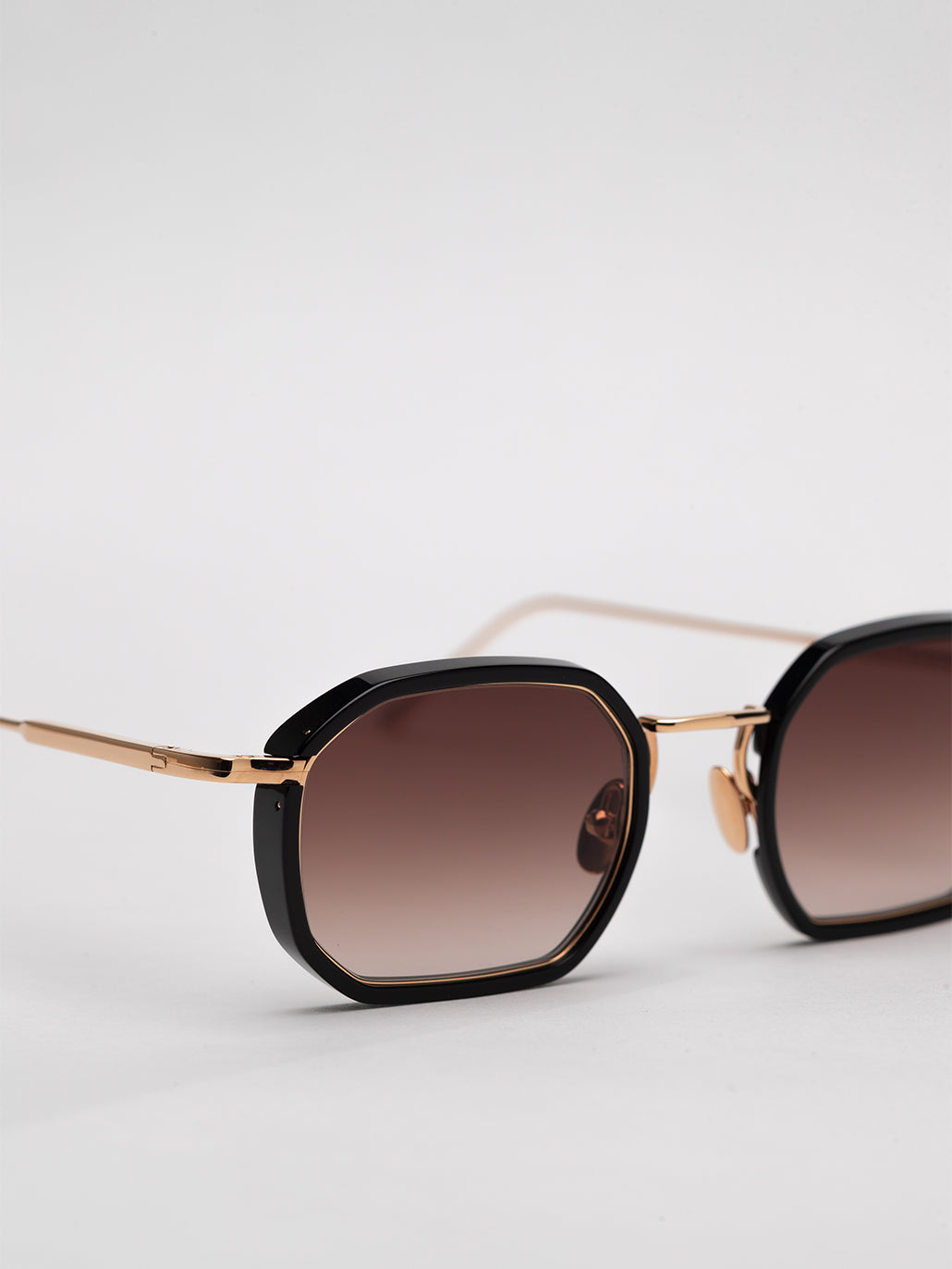 The metal corewire is made of stainless steel frame with a rose gold plating (5µ, with a jeweler’s stamp inside the temple). Temple tips and eye rims in black acetate