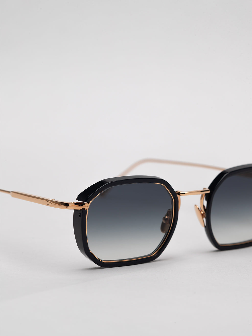 A unisex graphic shape enlivened by our new geometric bridge and featuring traditional end pieces.
