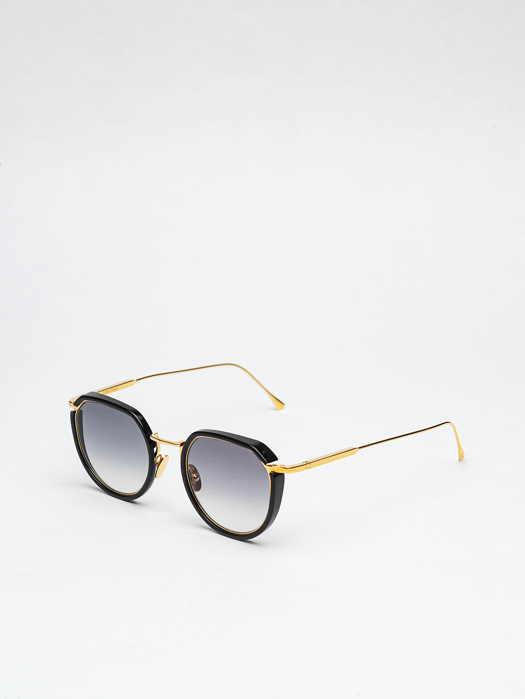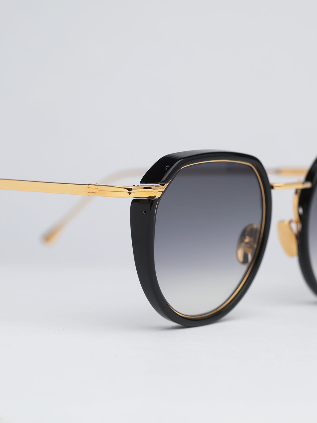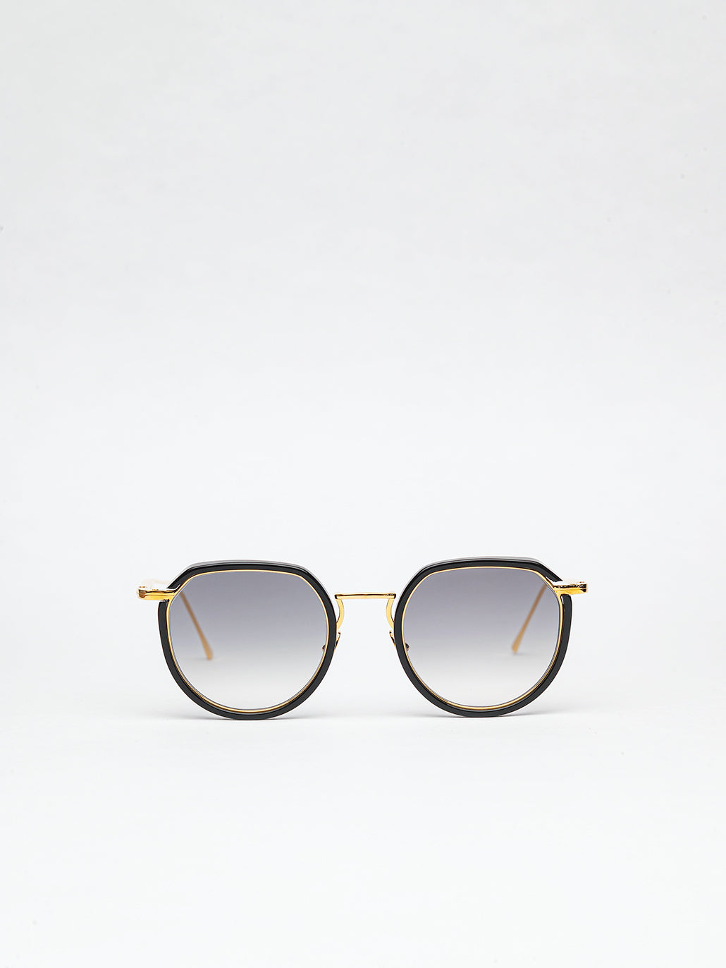 The metal corewire is made of stainless steel frame with a yellow gold plating (5µ, with a jeweler’s stamp inside the temple). Temple tips and eye rims in black acetate