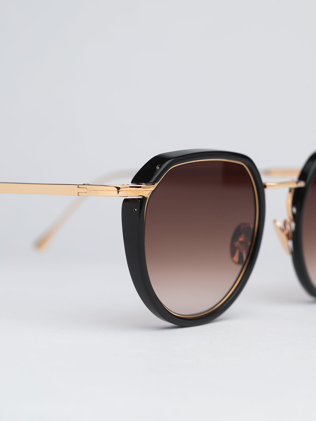 The metal corewire is made of stainless steel frame with a rose gold plating (5µ, with a jeweler’s stamp inside the temple). Temple tips and eye rims in black acetate