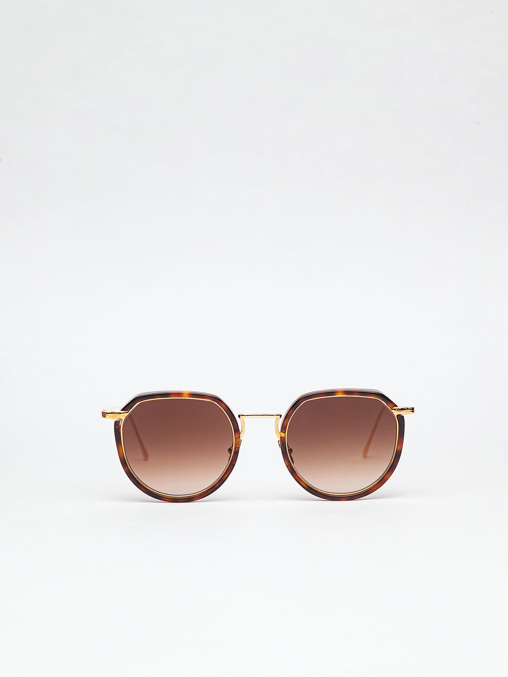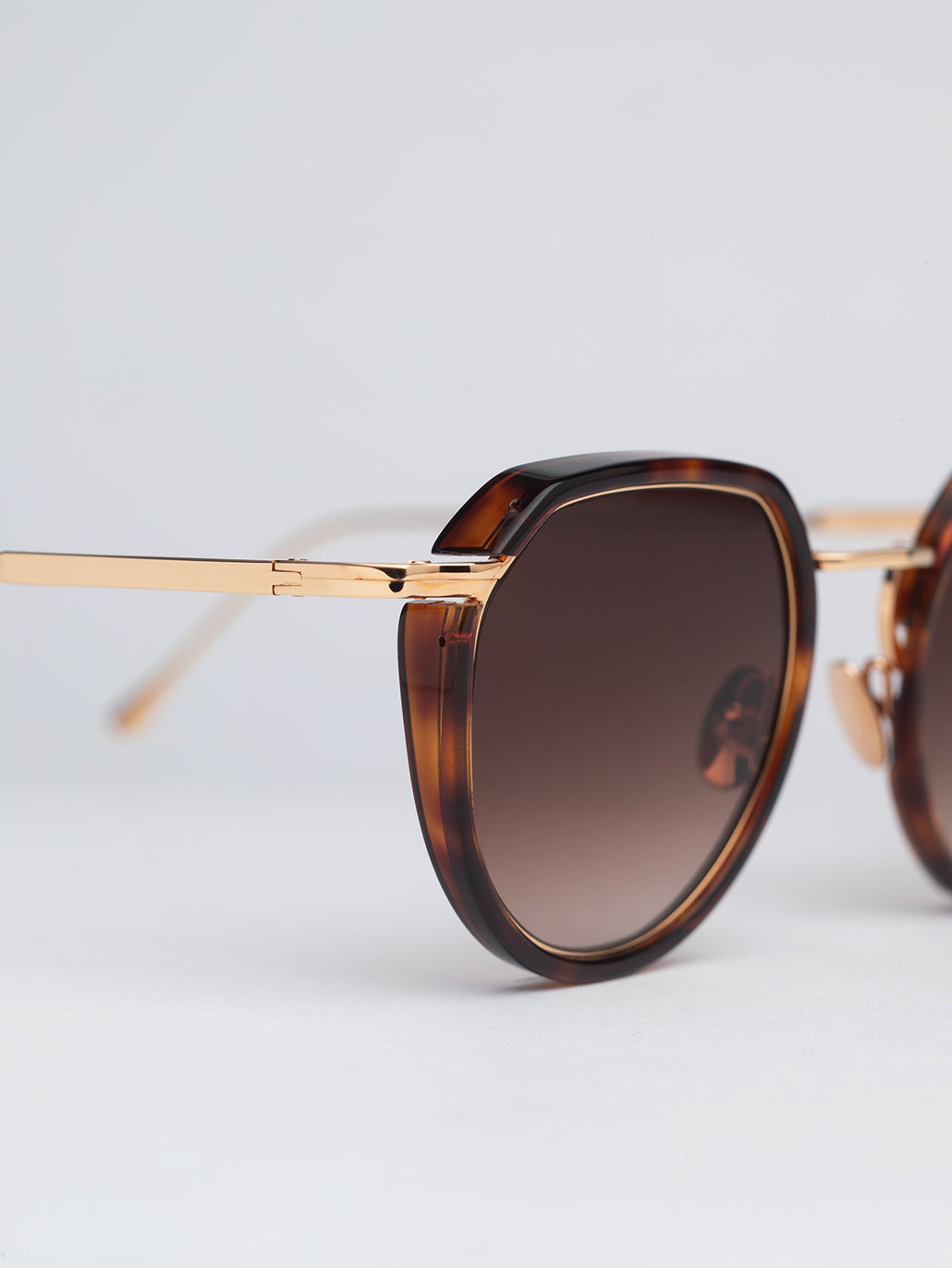 The metal corewire is made of stainless steel frame with a rose gold plating (5µ, with a jeweler’s stamp inside the temple). Temple tips and eye rims in dark brown tortoise acetate