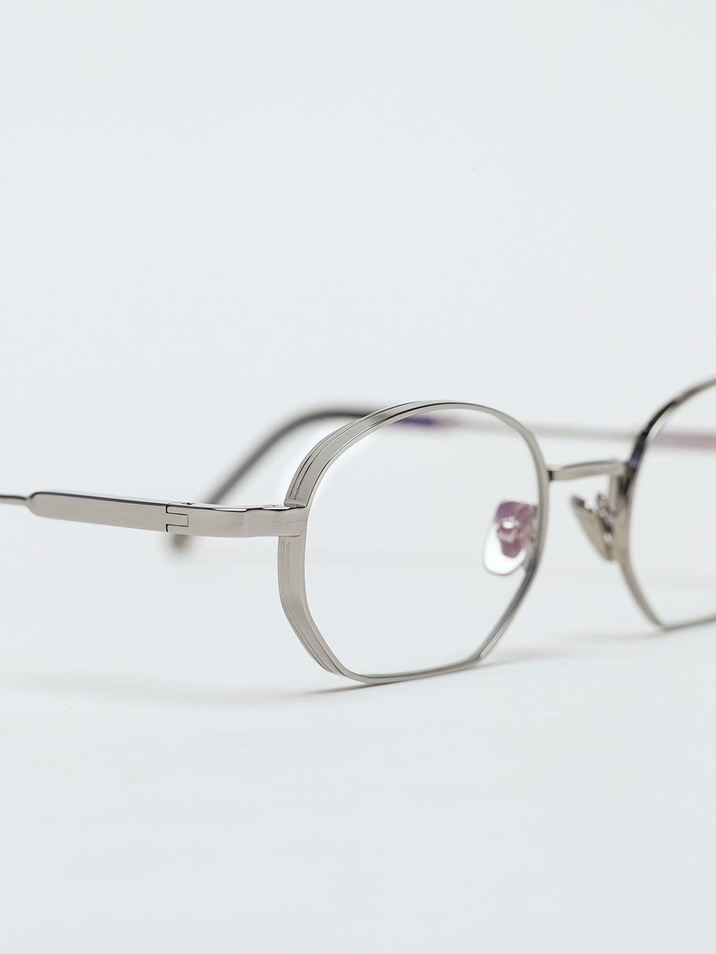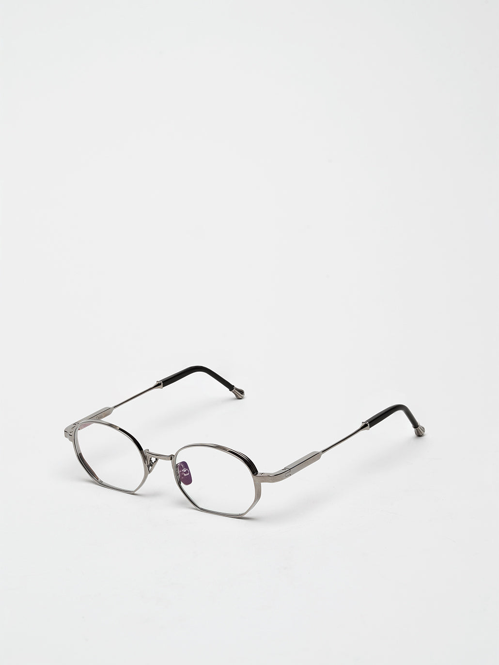 A unisex rectangular shape with 4mm streak-engraved metal. The frame is enlivened by our new signature temples featuring John Dalia’s engraved end pieces. Custom Infinite black acetate on temples & Ruthenium plated alloy frame. Demonstration CR39 lenses with AR treatment. Reference O-511. Case and cleaning cloth are included.