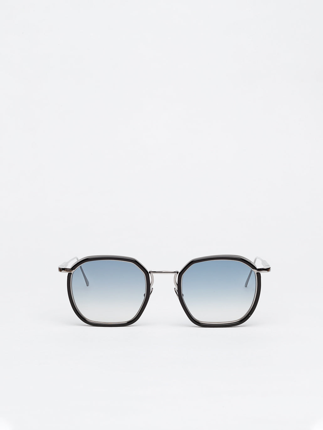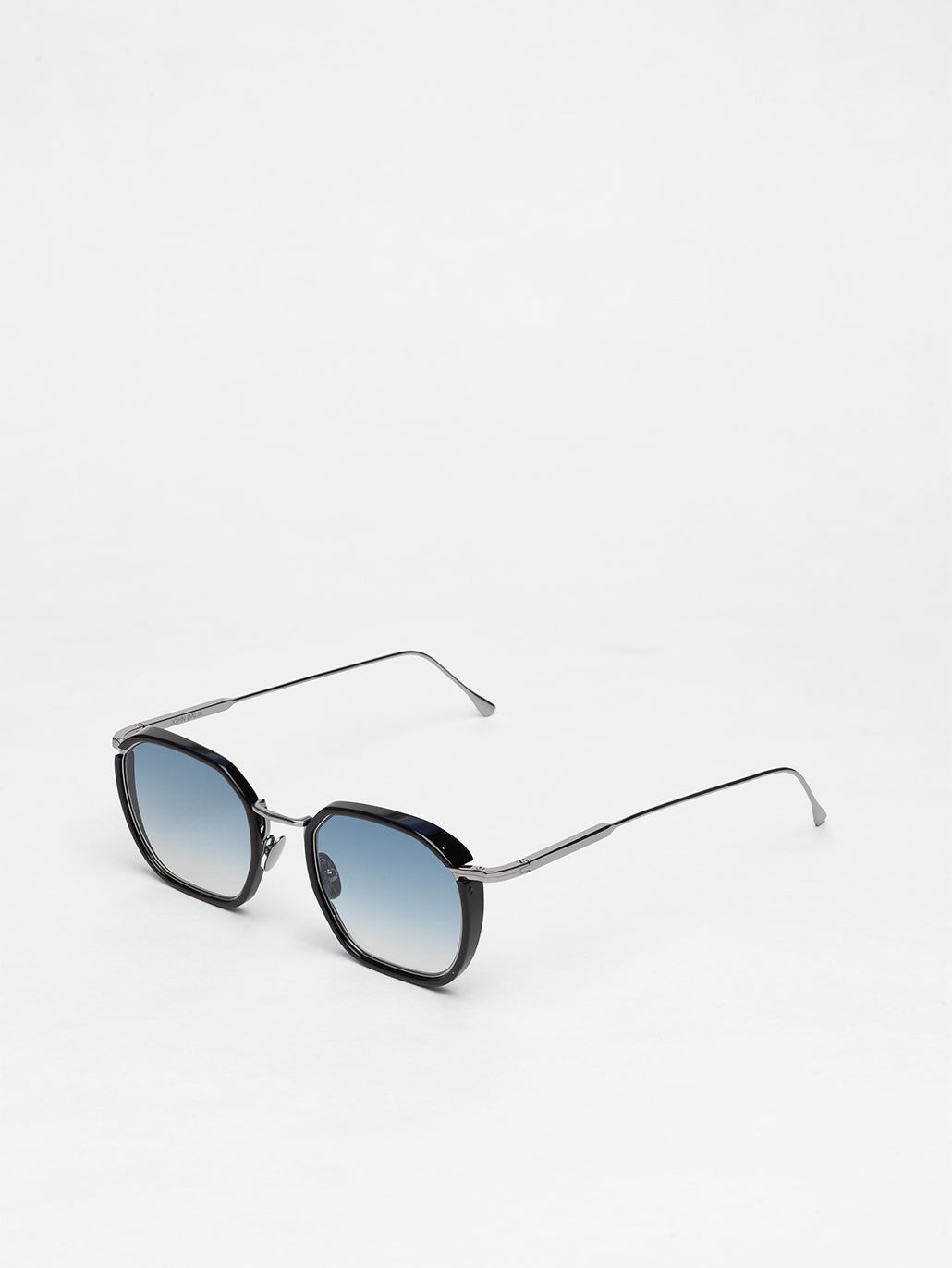 The metal corewire is made of stainless steel frame with a ruthenium plating (3µ). Temple tips and eye rims in black acetate