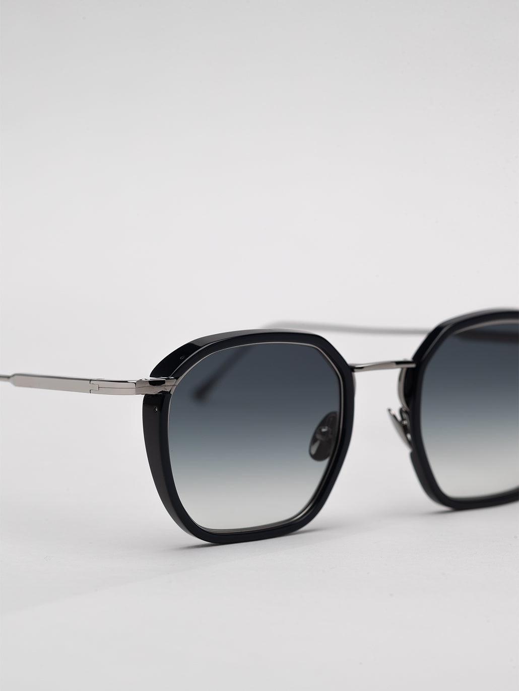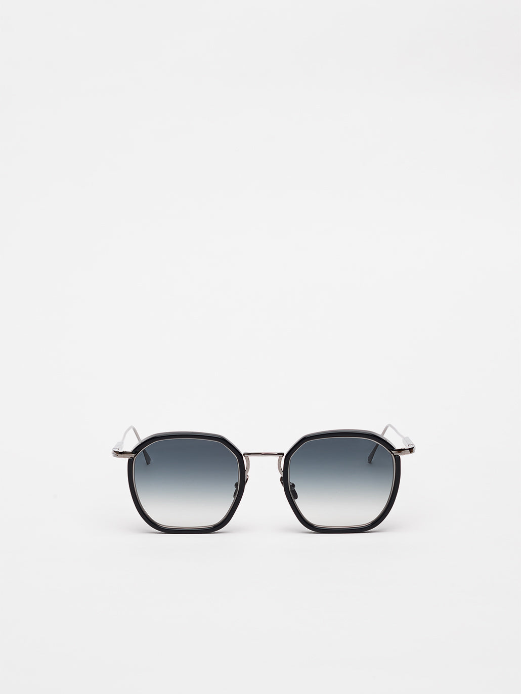 A masculine medium sized graphic shape enlivened by our new geometric bridge and featuring traditional end pieces.