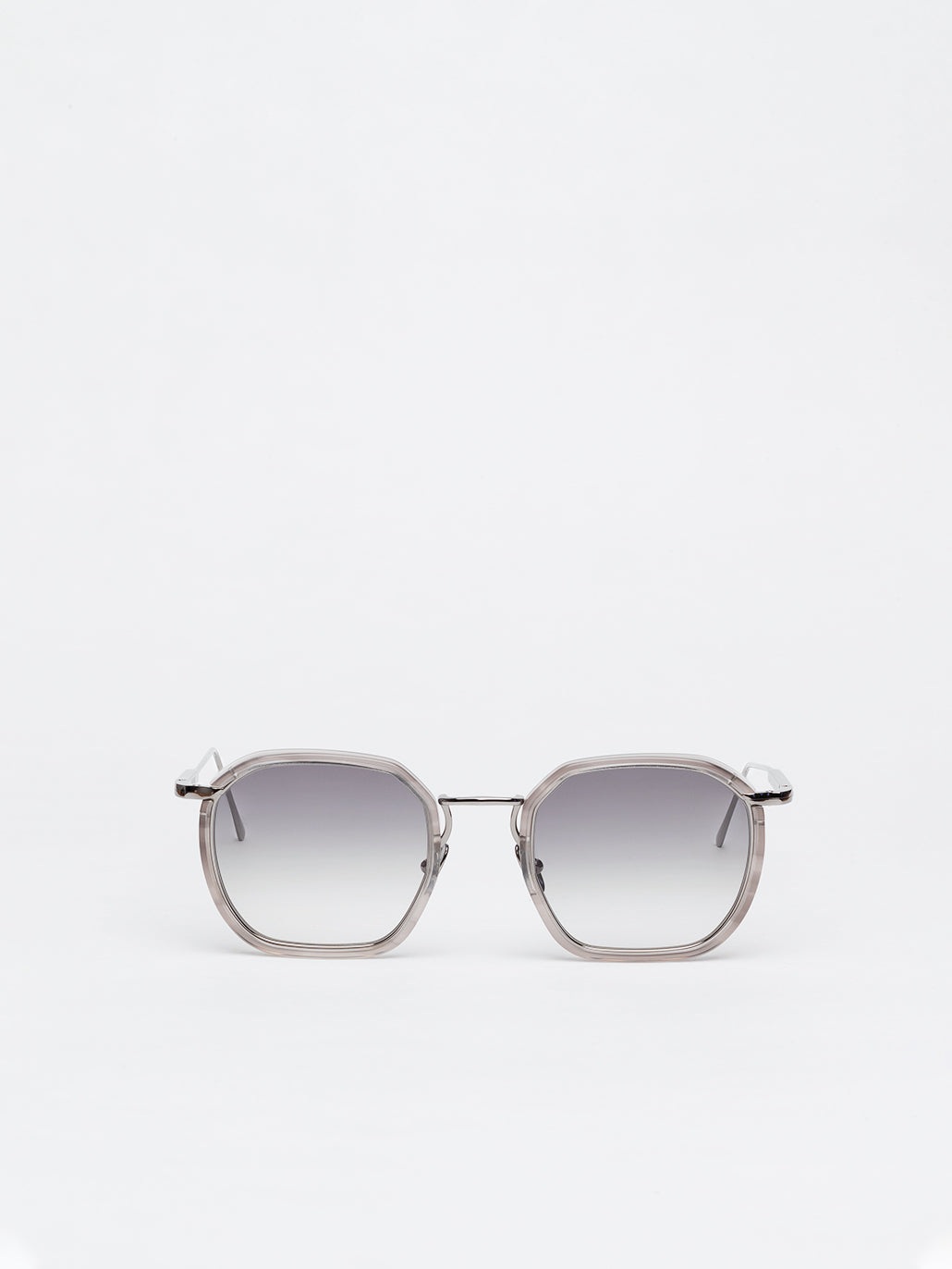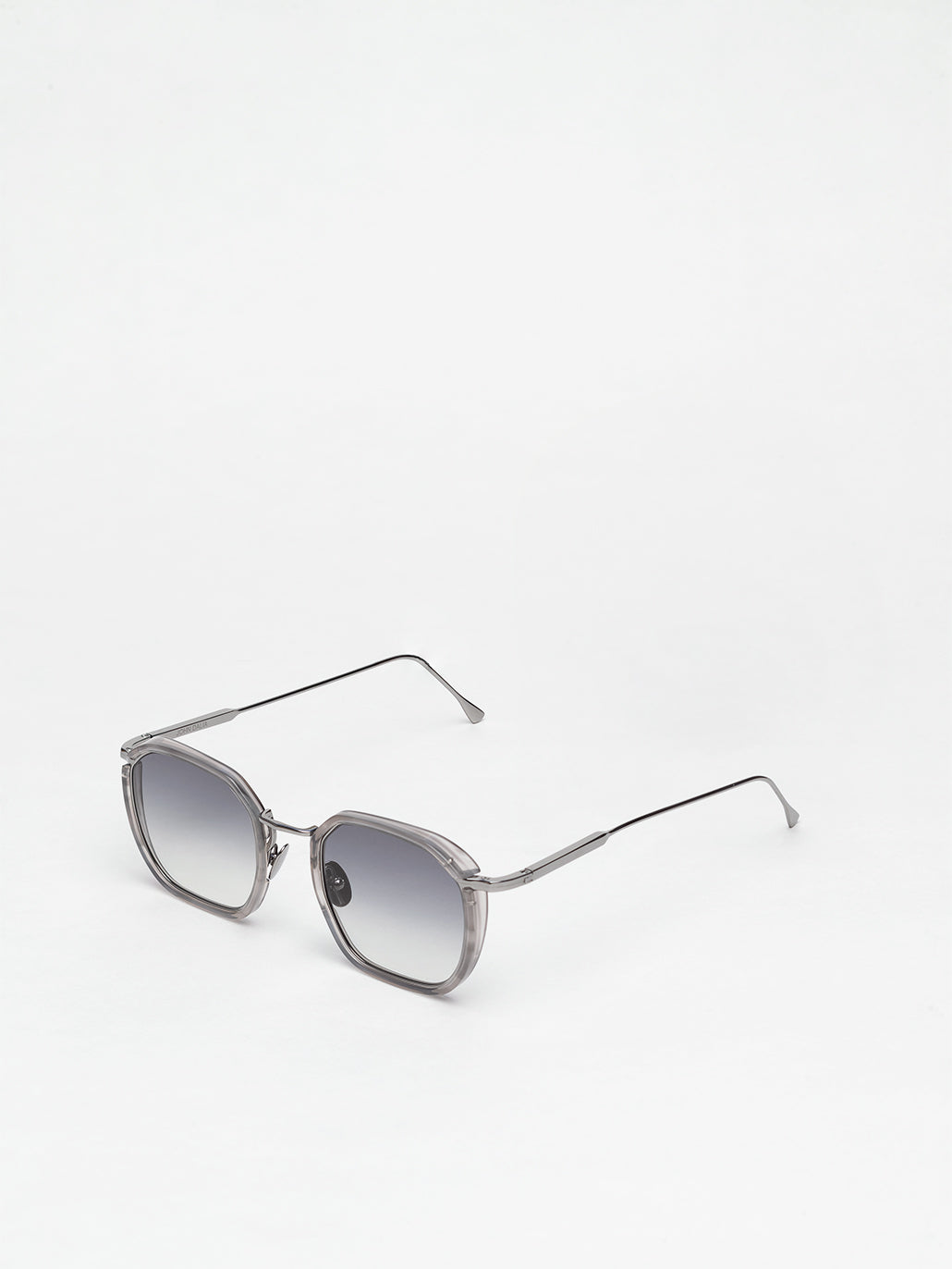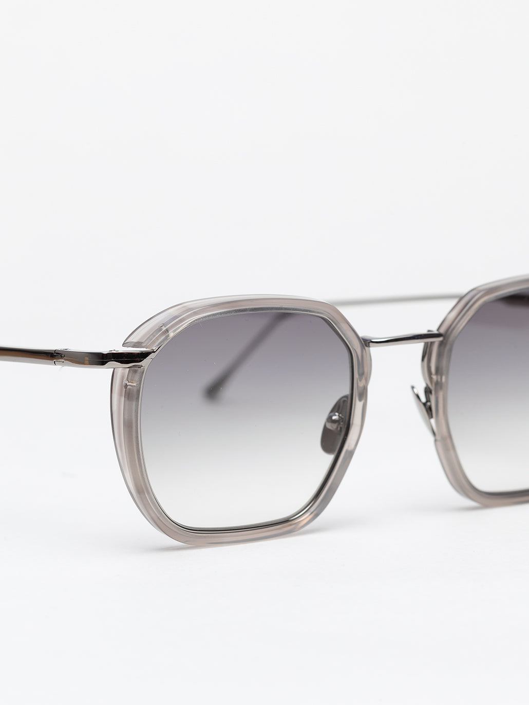 The metal corewire is made of stainless steel frame with a ruthenium plating (3µ). Temple tips and eye rims in crystal acetate