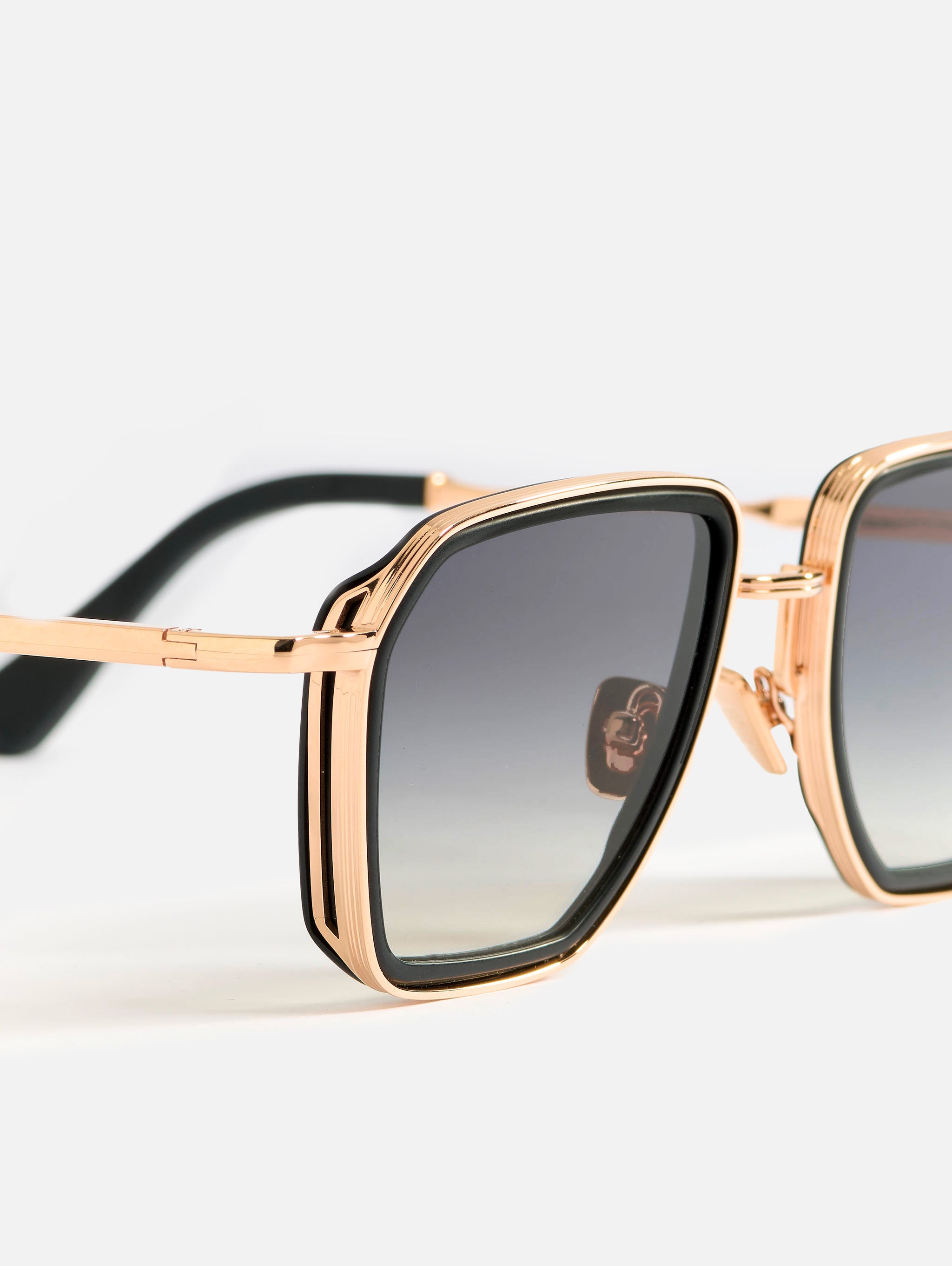 The metal corewire is made of stainless steel frame with an rose gold plating (5µ, with a jeweler’s stamp inside the temple). Temple tips and eye rims in infinite black acetate.