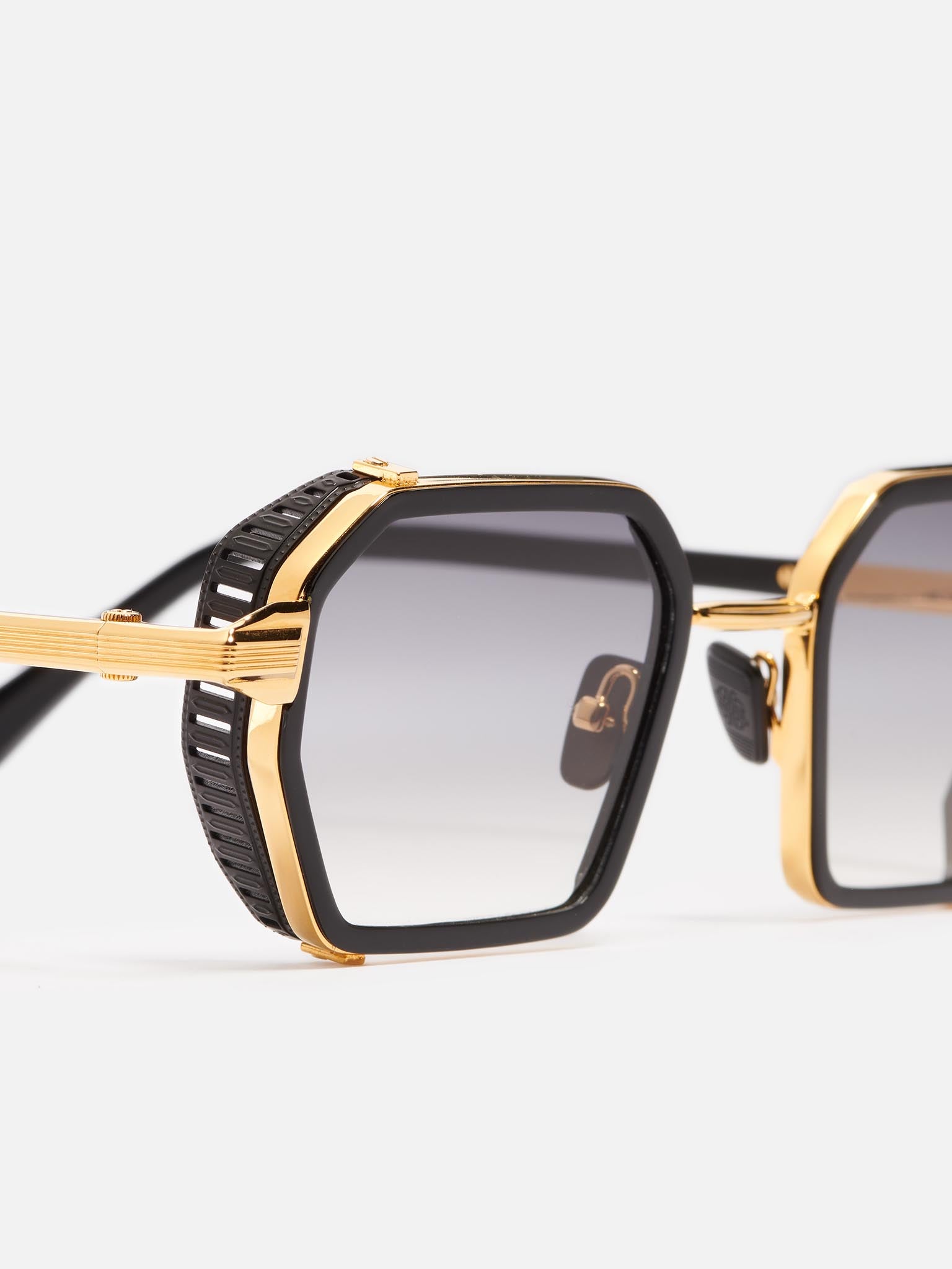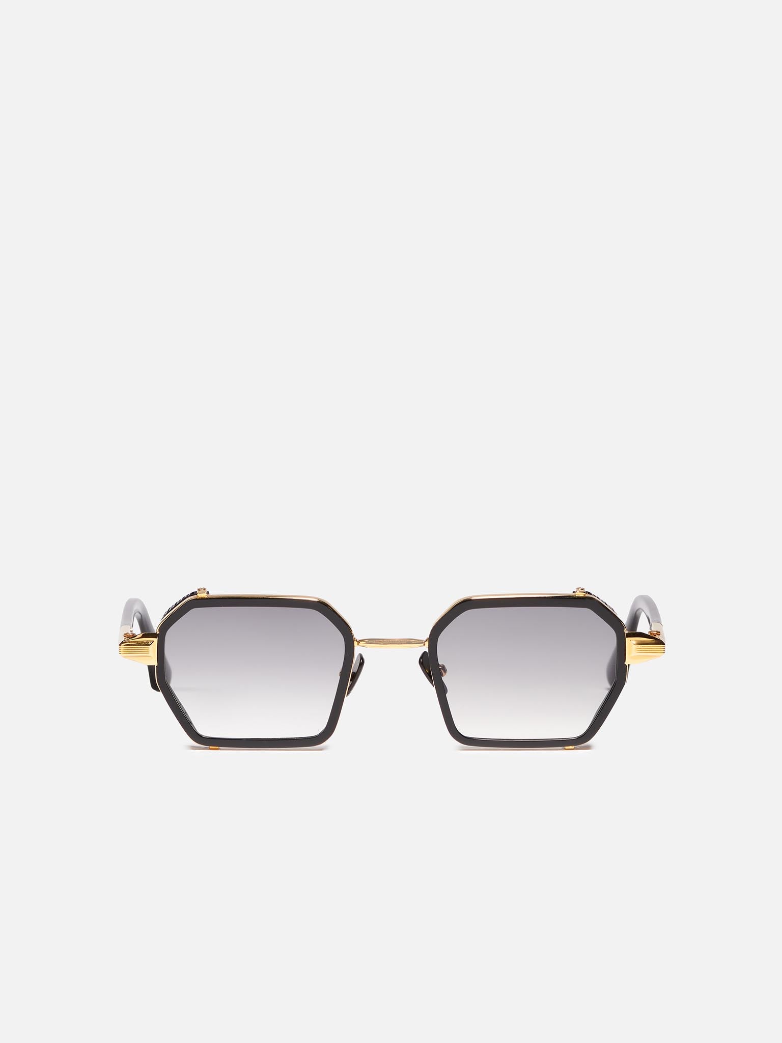 The metal corewire is made of stainless steel frame with a yellow gold plating (5µ, with a jeweler’s hallmark on the inner temple). Side shields and nose pads in carbon-effect black. Temple tips and rims in black acetate.