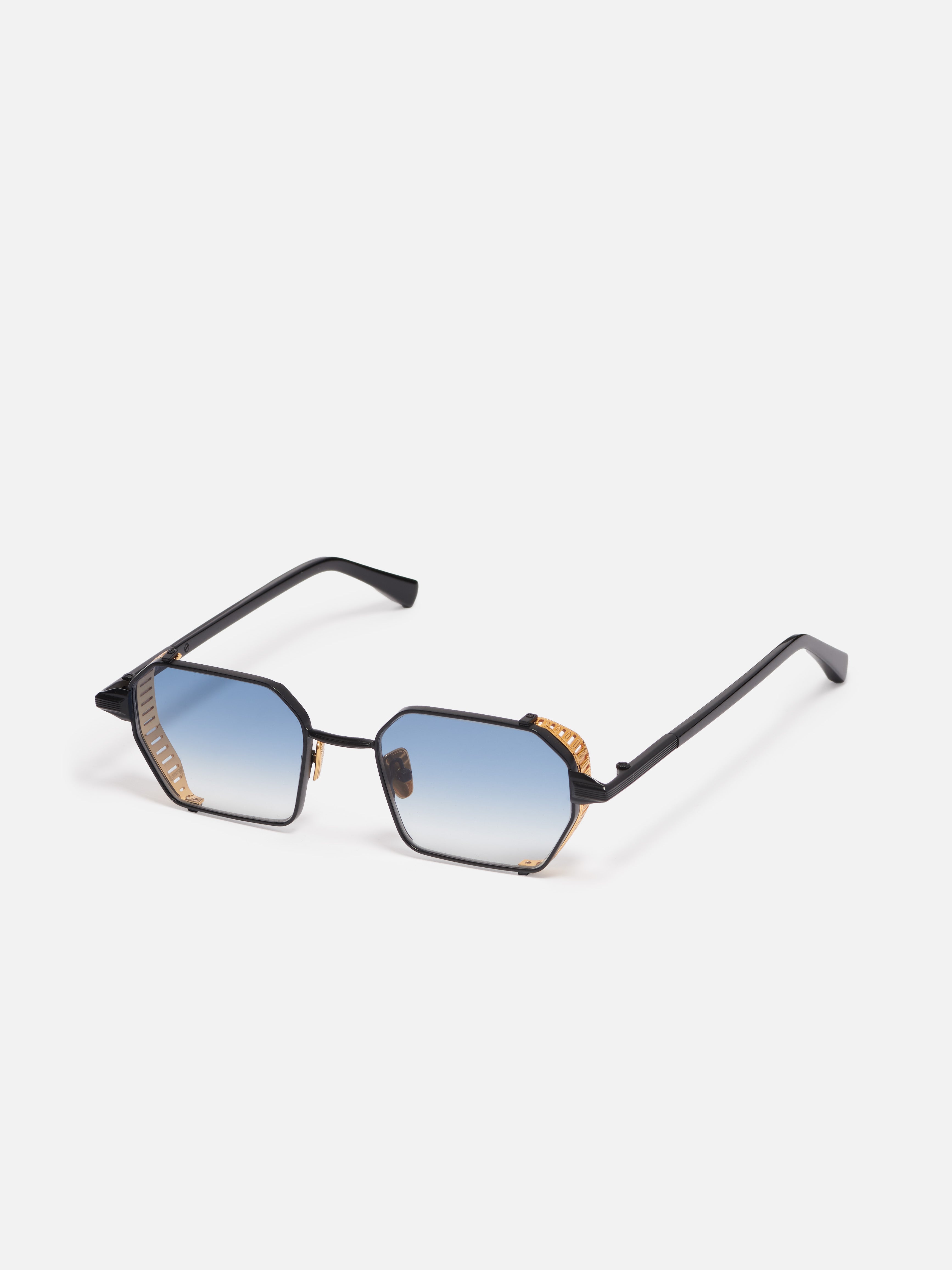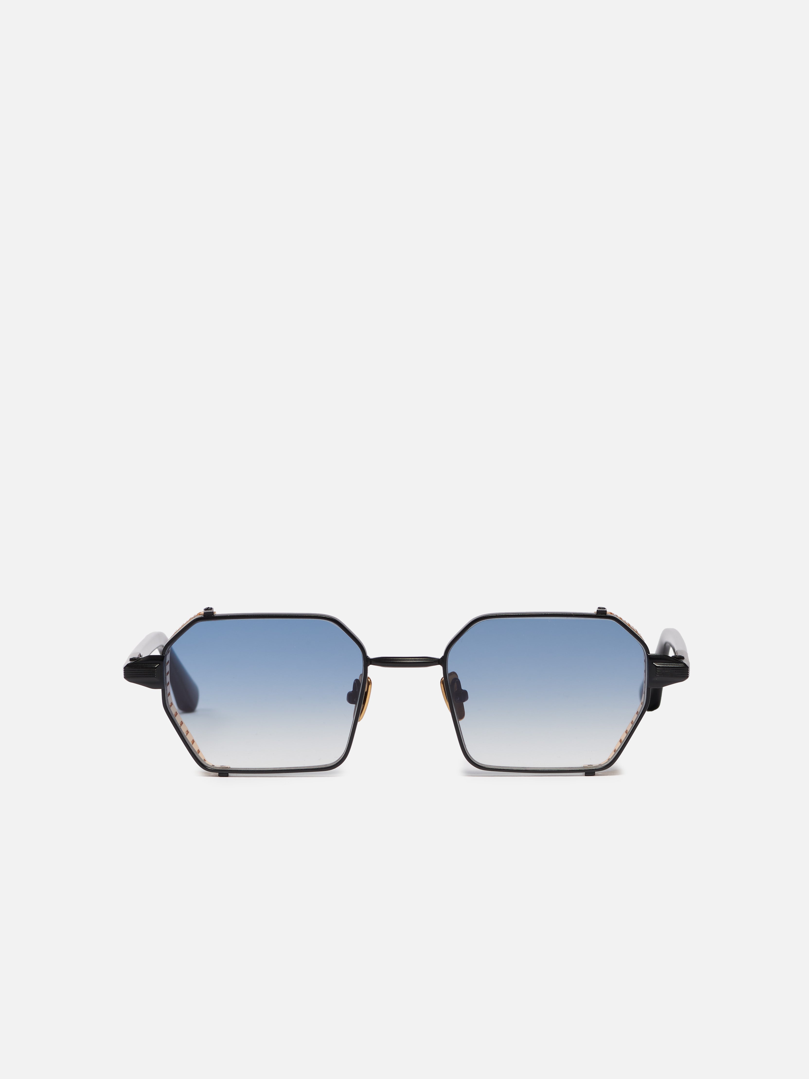 The metal corewire is made of stainless steel frame with a carbon black finish. Side shields and nose pads in rose gold. Temple tips in black acetate.