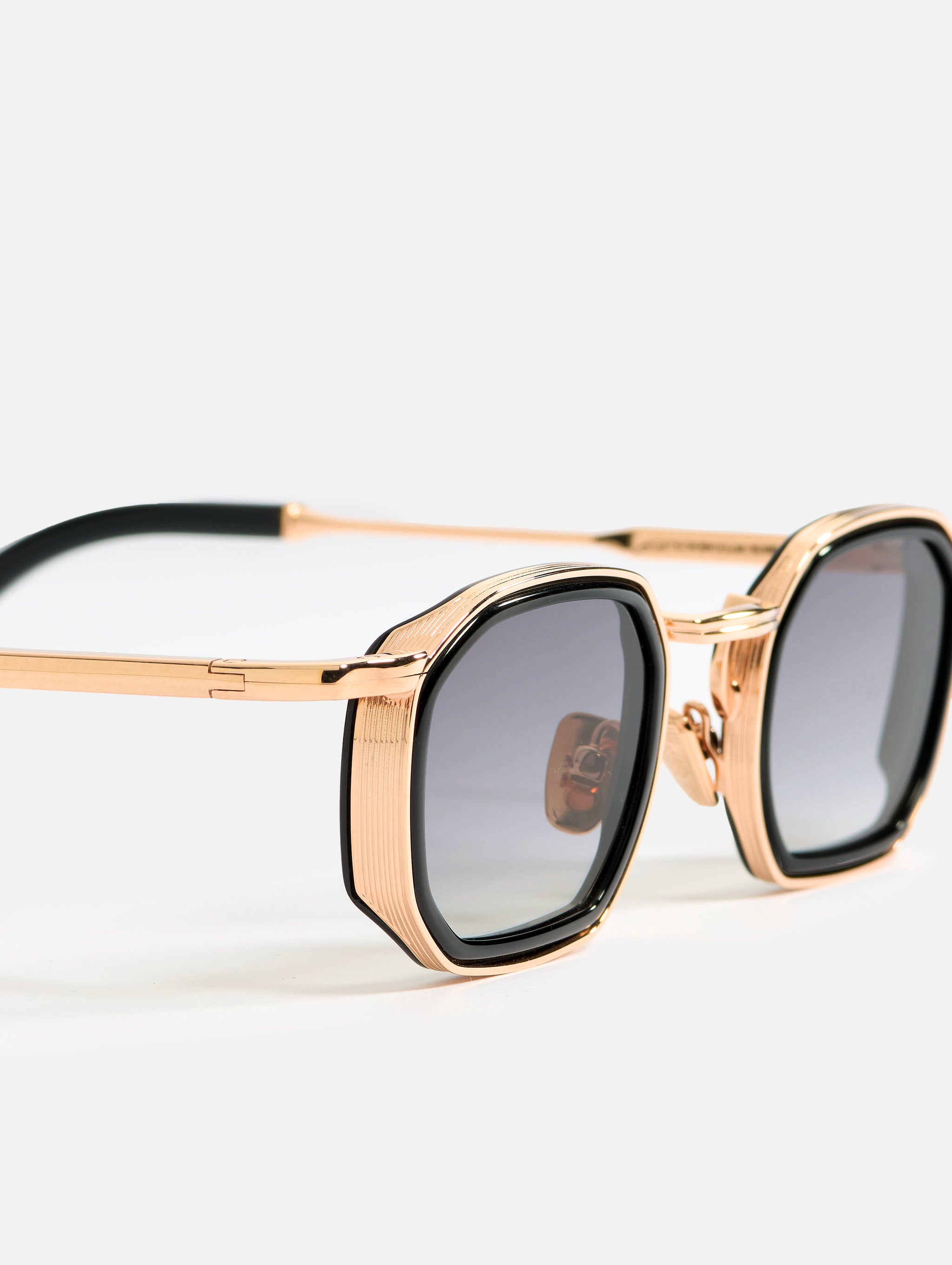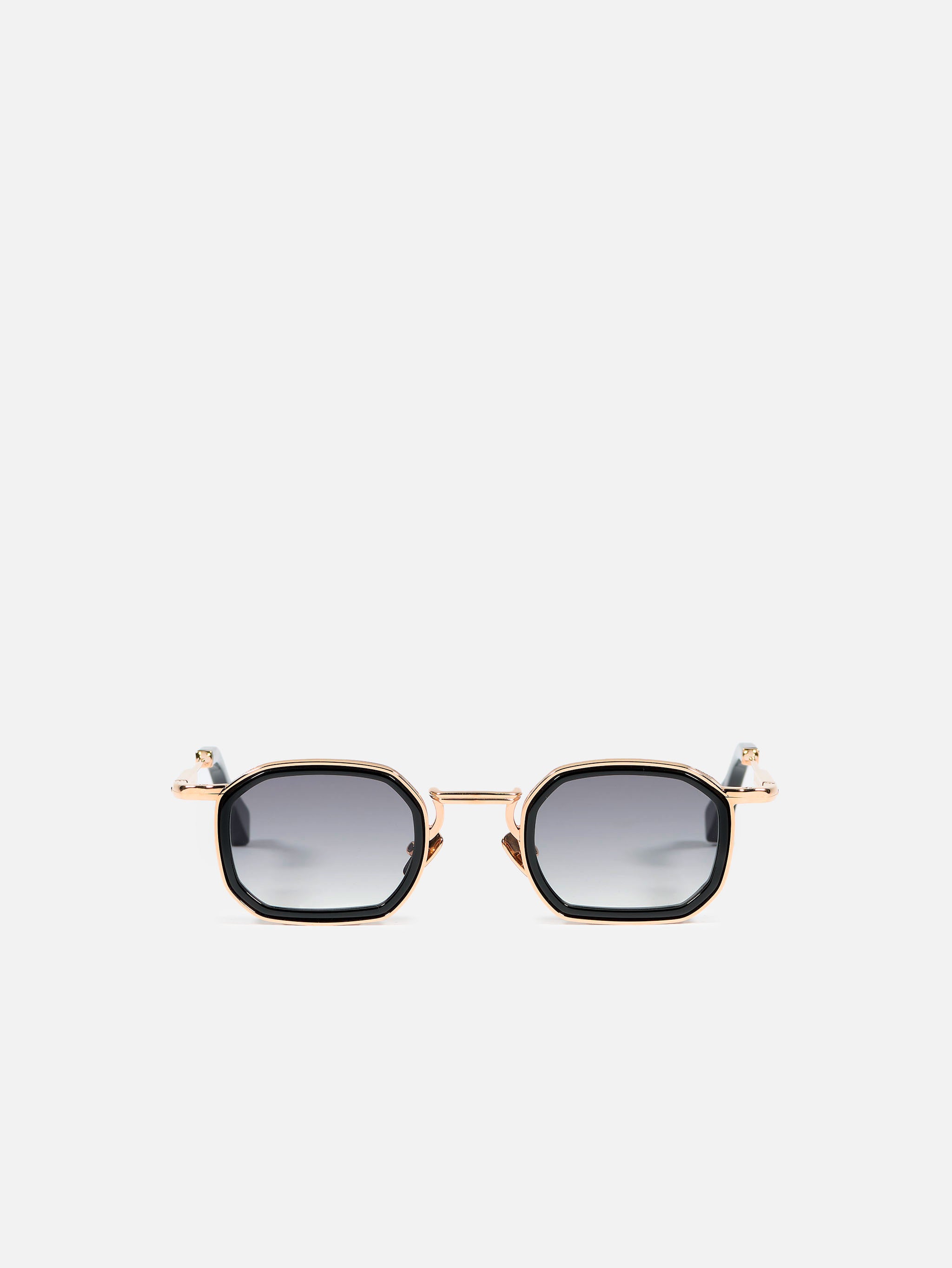 The metal corewire is made of stainless steel frame with a rose gold plating (5µ, with a jeweler’s stamp inside the temple). Temple tips and eye rims in black acetate
