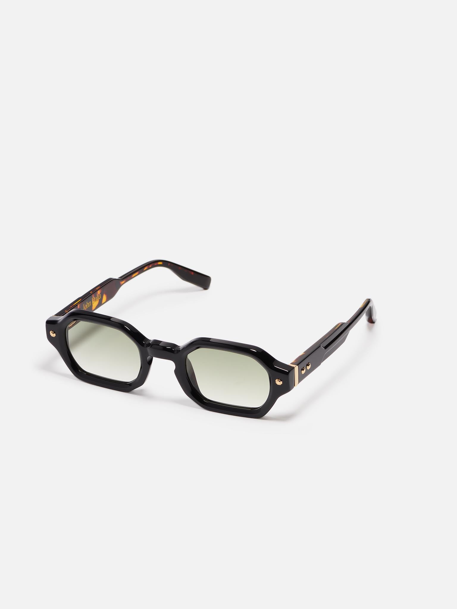 Project 05 is a unisex frame crafted from an 8mm acetate sheet. It features a rectangular shape, a signature John Dalia armature and hinges, as well as decorative pins.