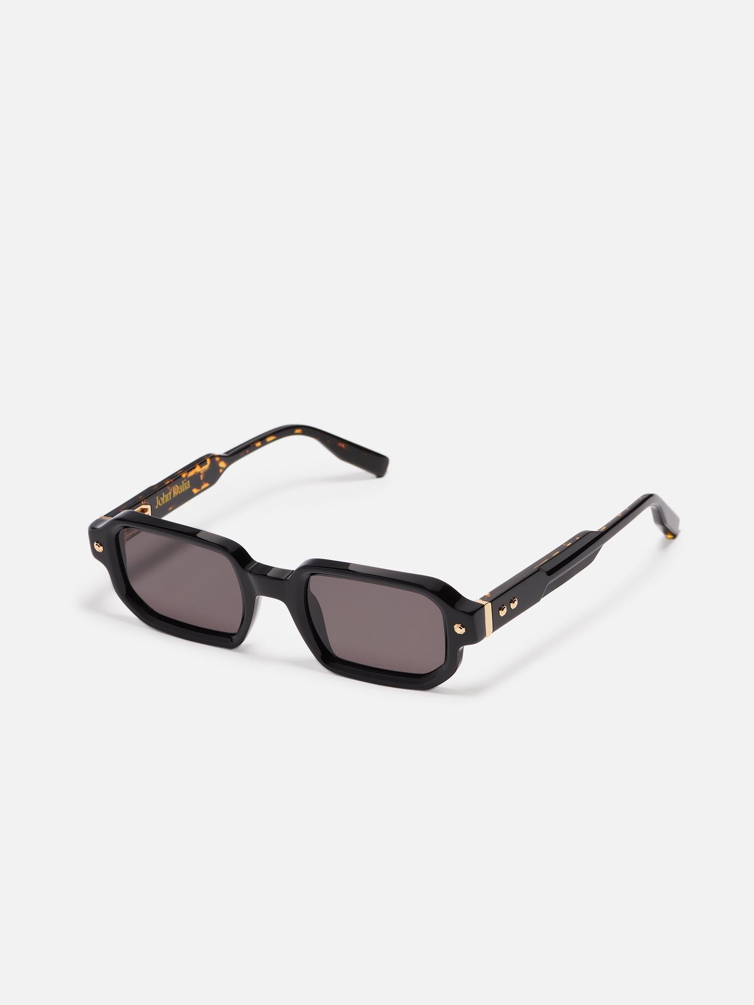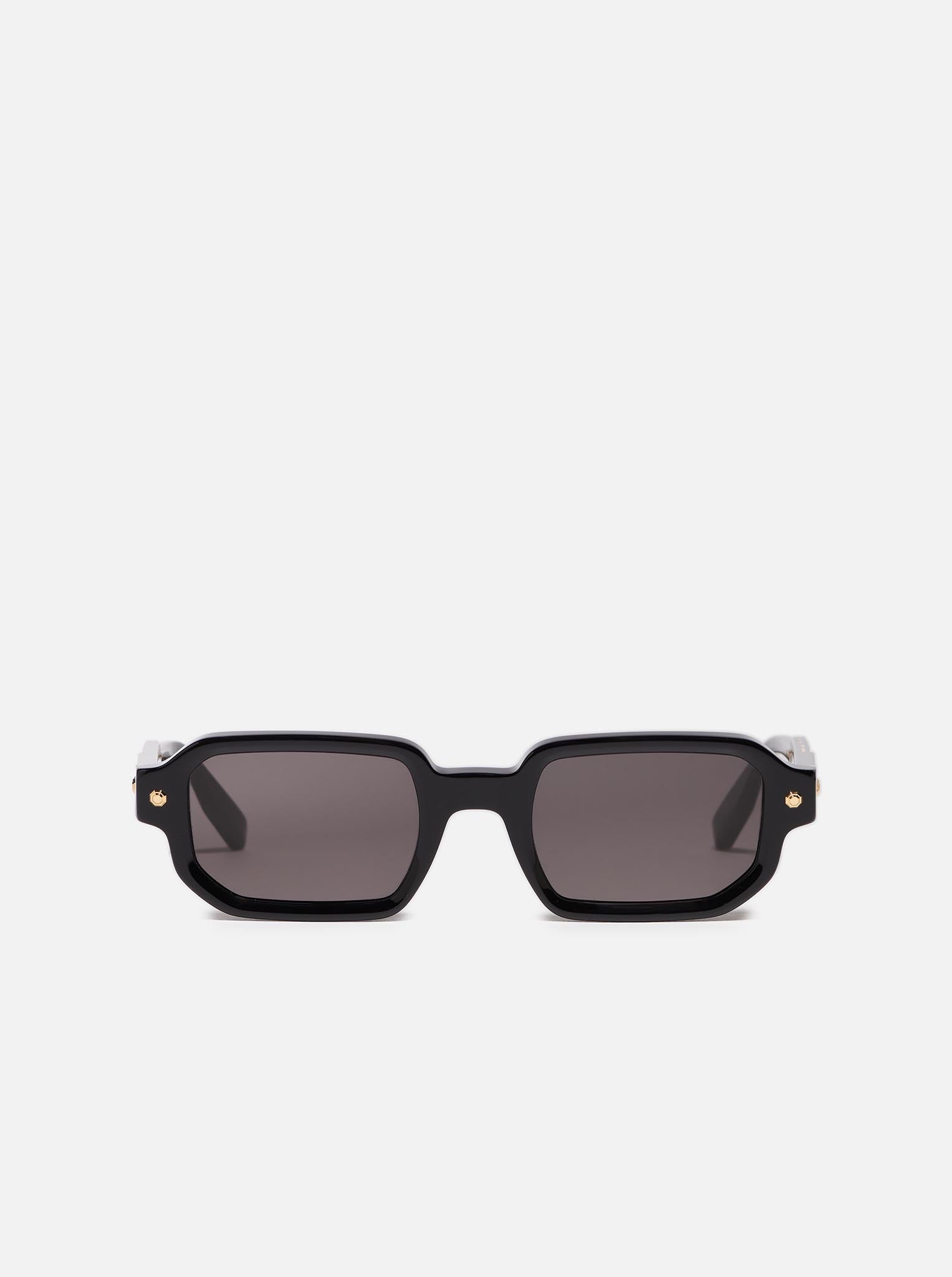 Shiny black acetate. Corewire, decorative elements in yellow gold colored stainless steel.