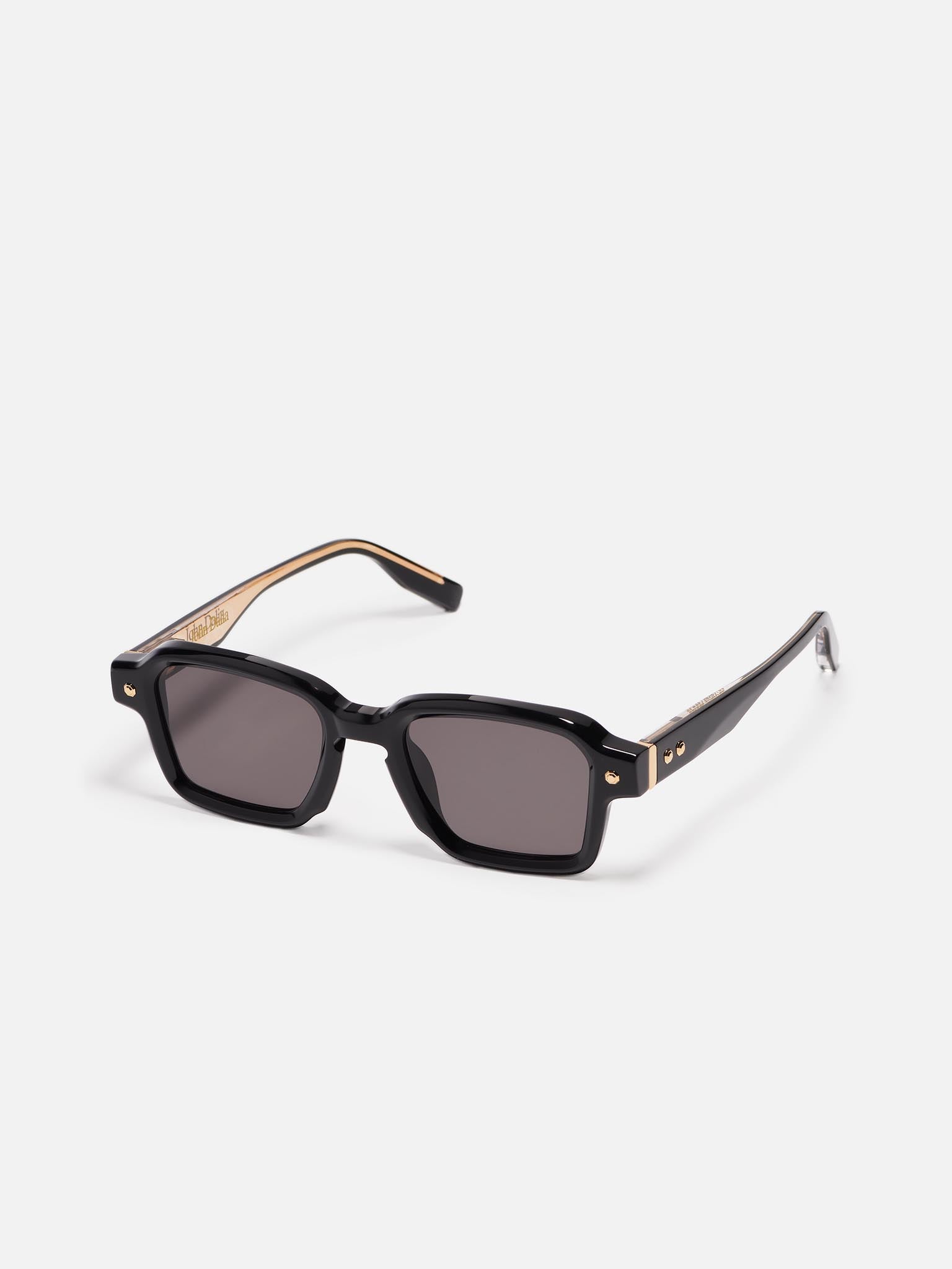 Project 07 is a unisex frame crafted from an 8mm acetate sheet. It features a rectangular shape, a signature John Dalia armature and hinges, as well as decorative pins.