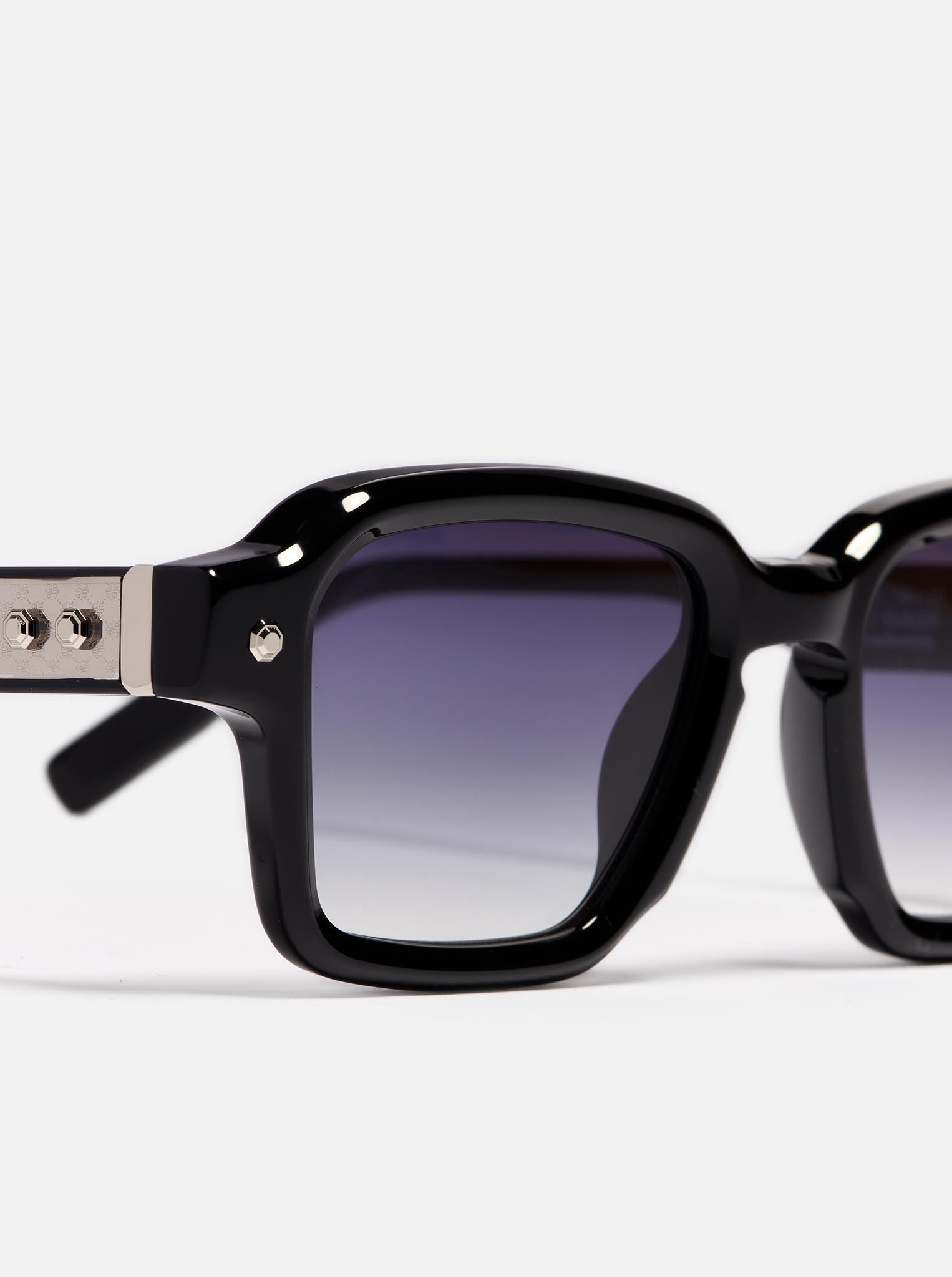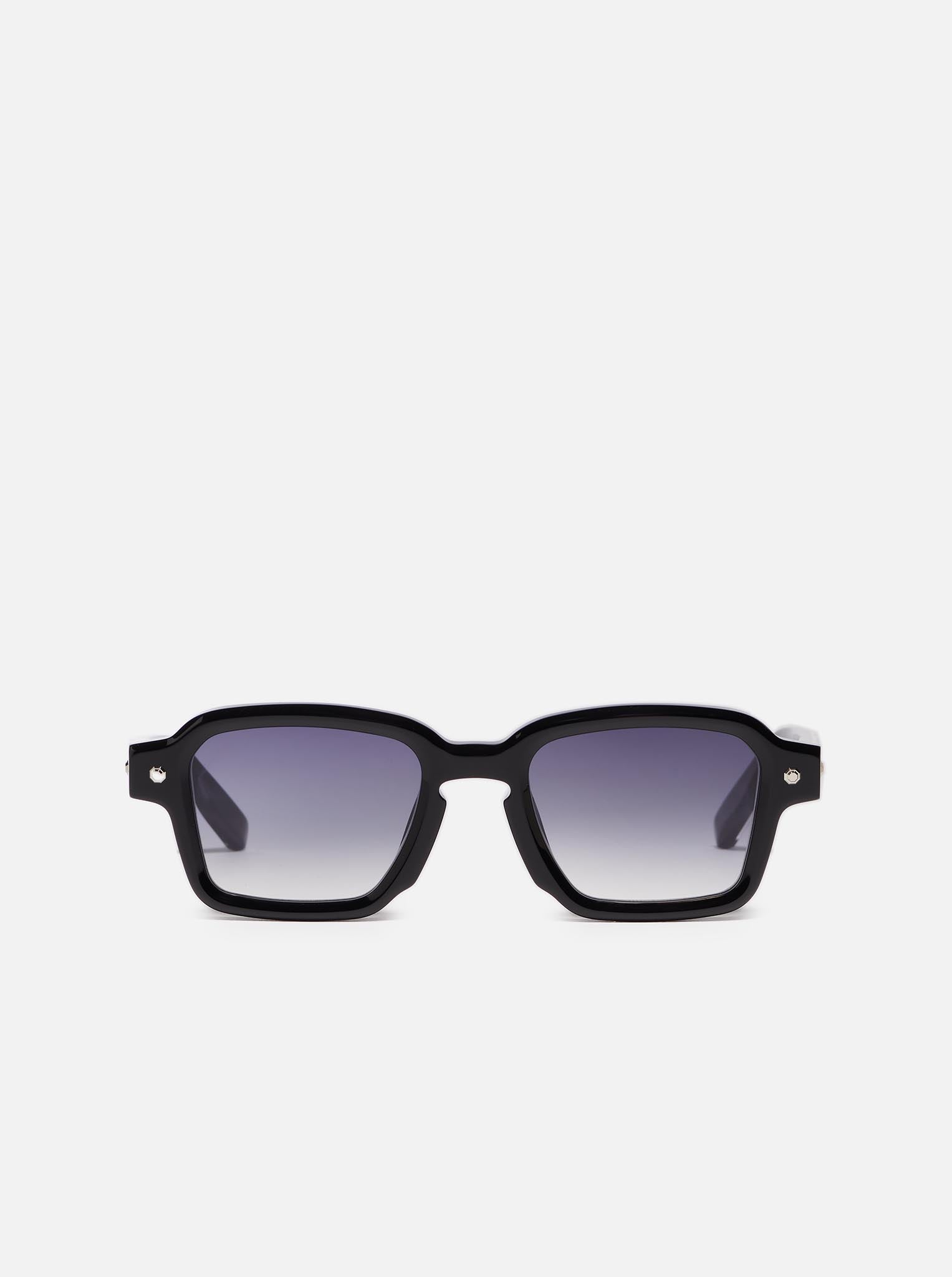 Shiny black acetate. Corewire, decorative elements in platine colored stainless steel.