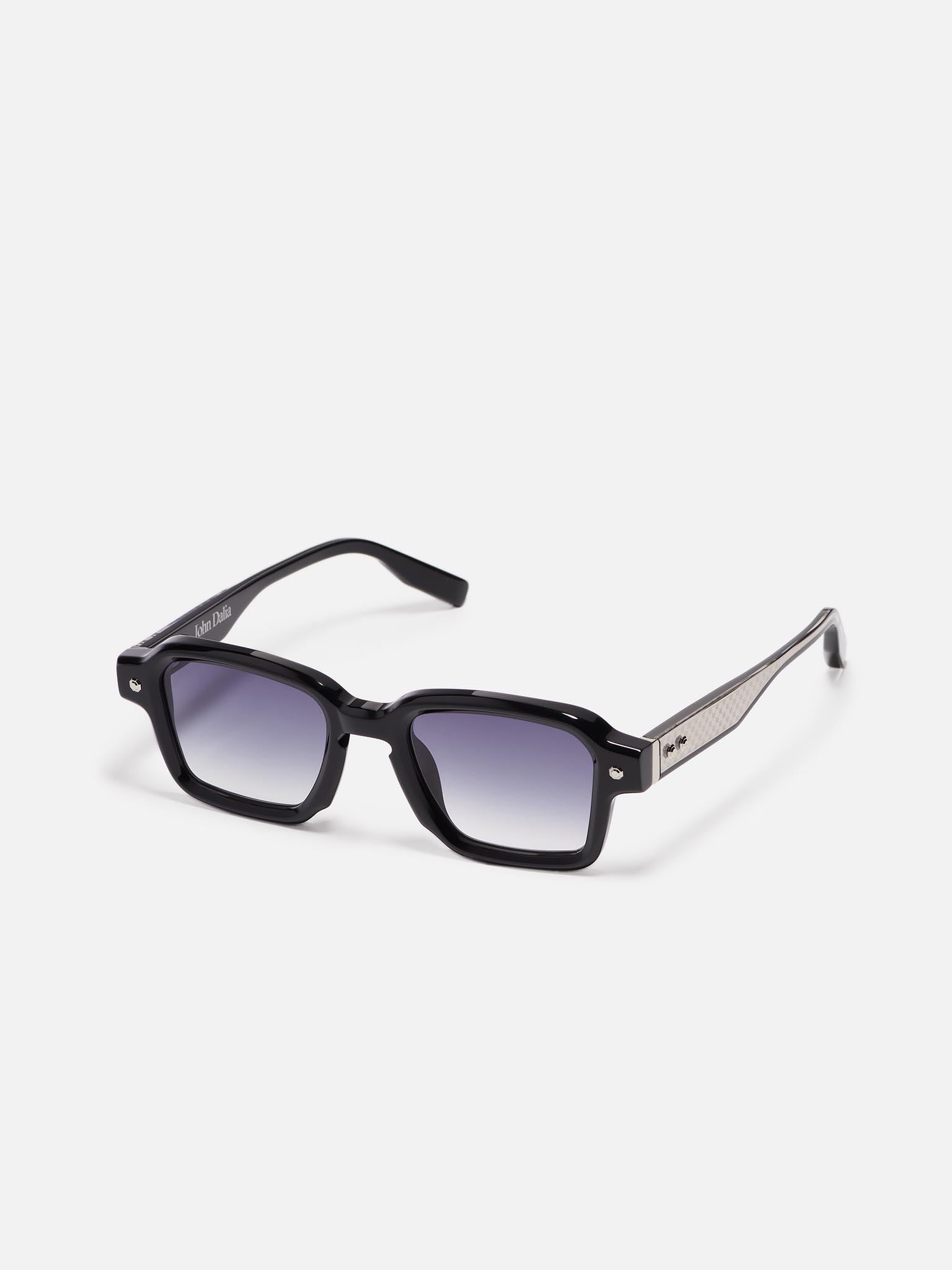 Project 07 is a unisex frame crafted from an 8mm acetate sheet. It features a rectangular shape, a signature John Dalia armature and hinges, as well as decorative pins.