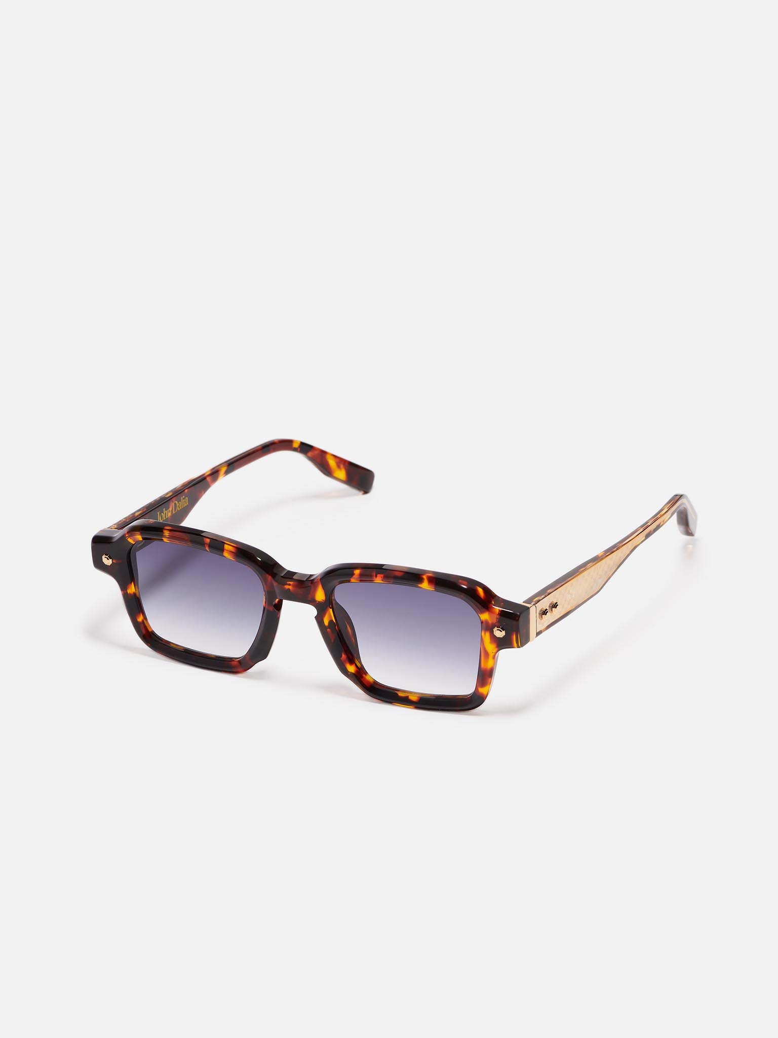 Classic havana acetate. Corewire, decorative elements in yellow gold colored stainless steel.