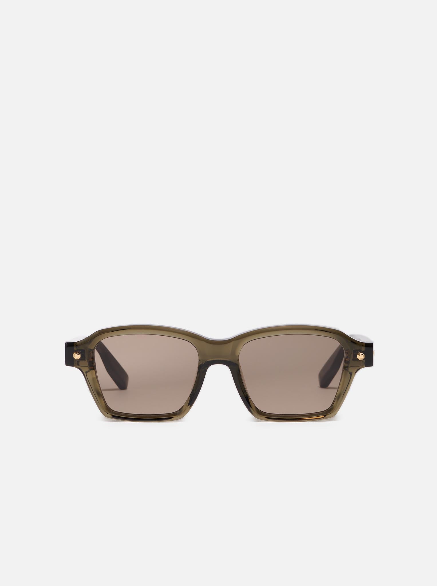 Olive translucid acetate. Corewire, decorative elements in yellow gold colored stainless steel.