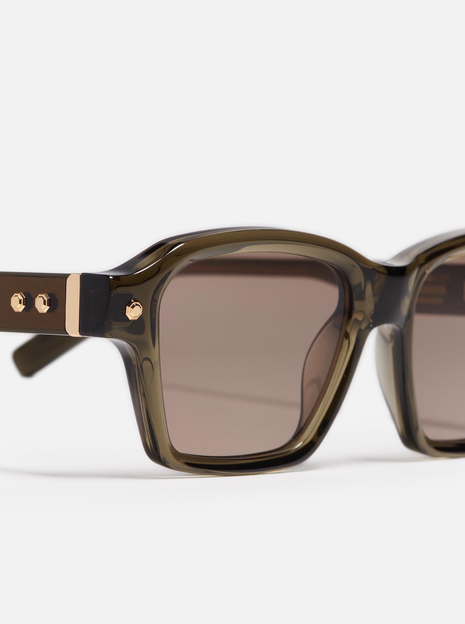 Project 08 is a unisex frame crafted from an 8mm acetate sheet. It features a rectangular shape, a signature John Dalia armature and hinges, as well as decorative pins.
