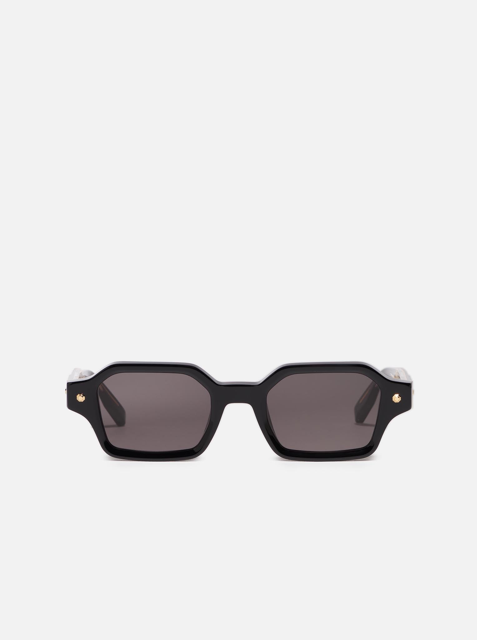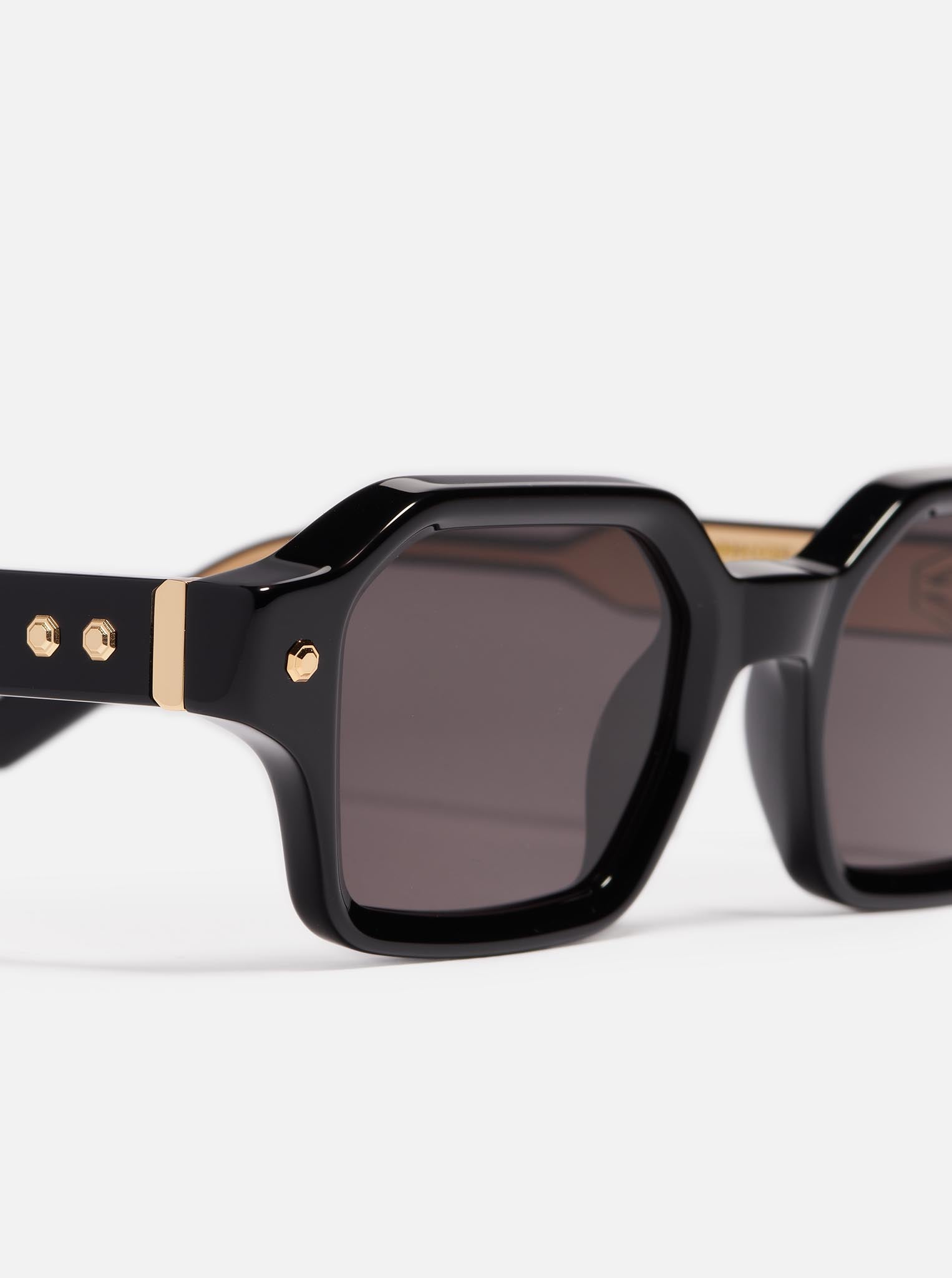 Project 09 is a unisex frame crafted from an 8mm acetate sheet. It features a rectangular shape, a signature John Dalia armature and hinges, as well as decorative pins.