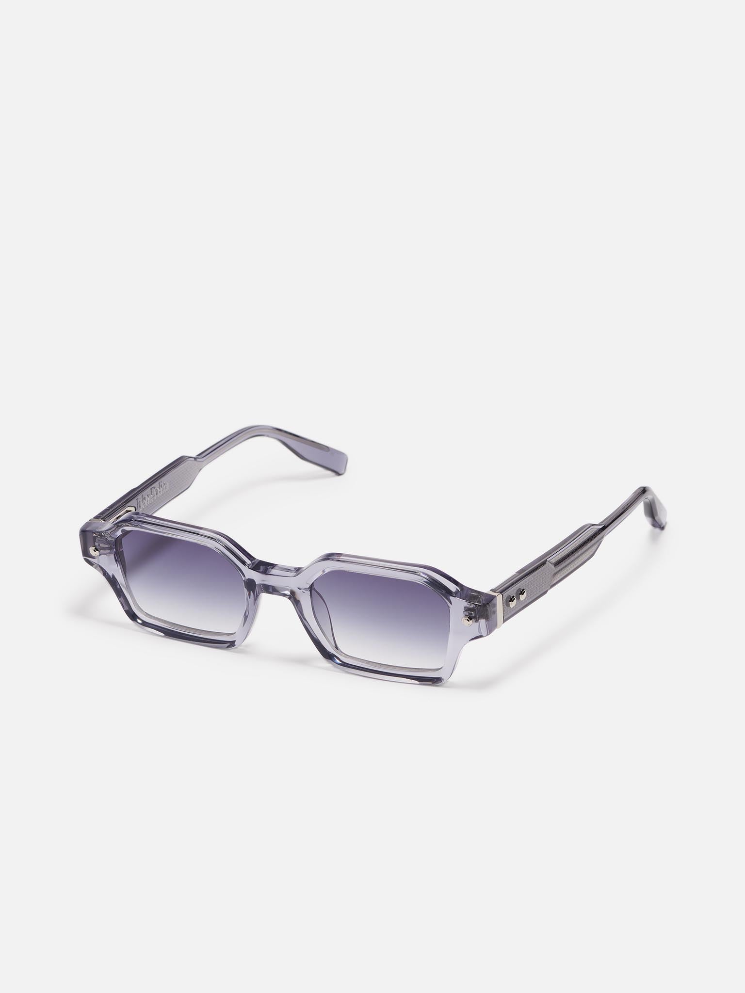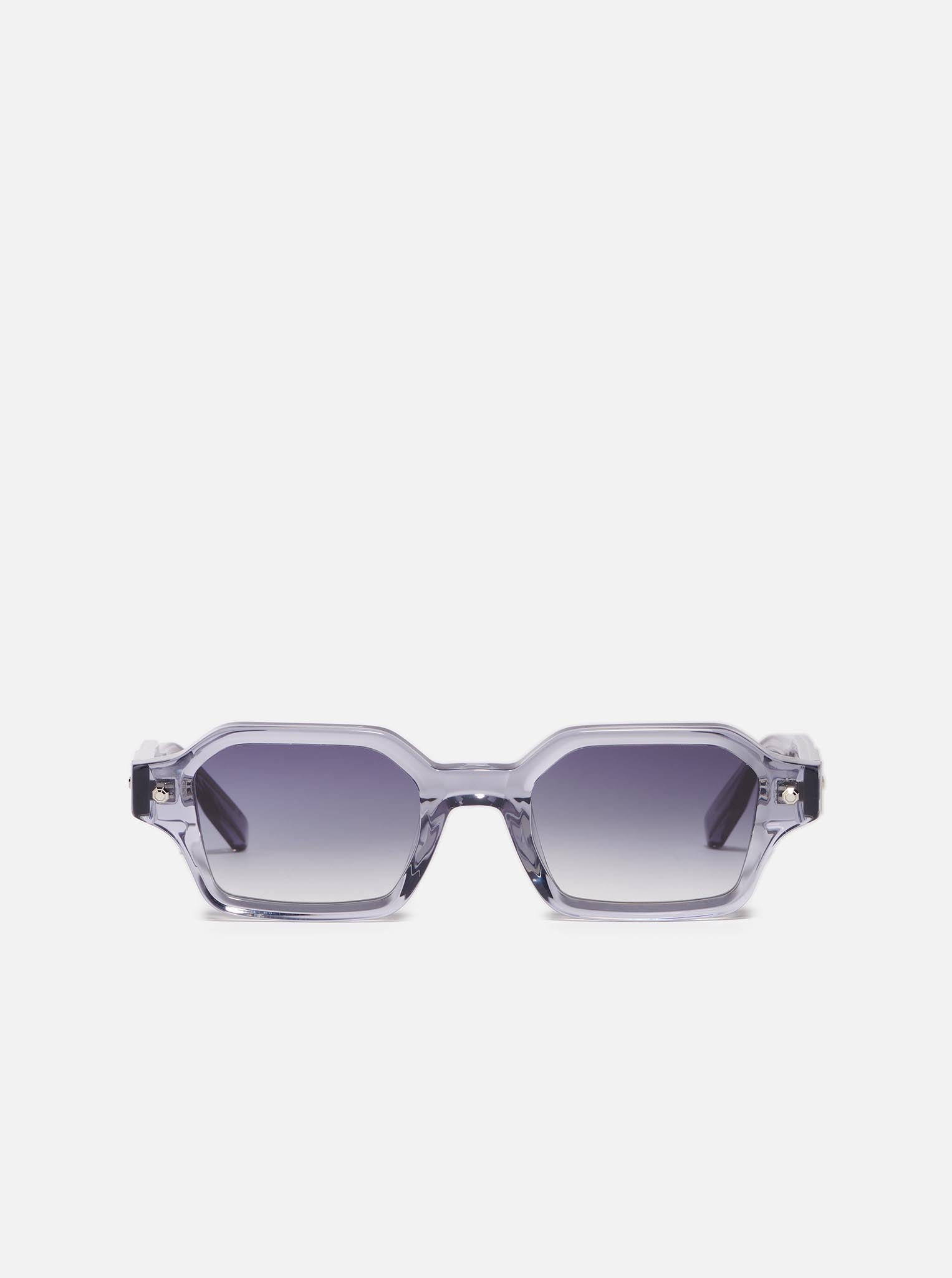 Grey translucid acetate. Corewire, decorative elements in platine colored stainless steel.