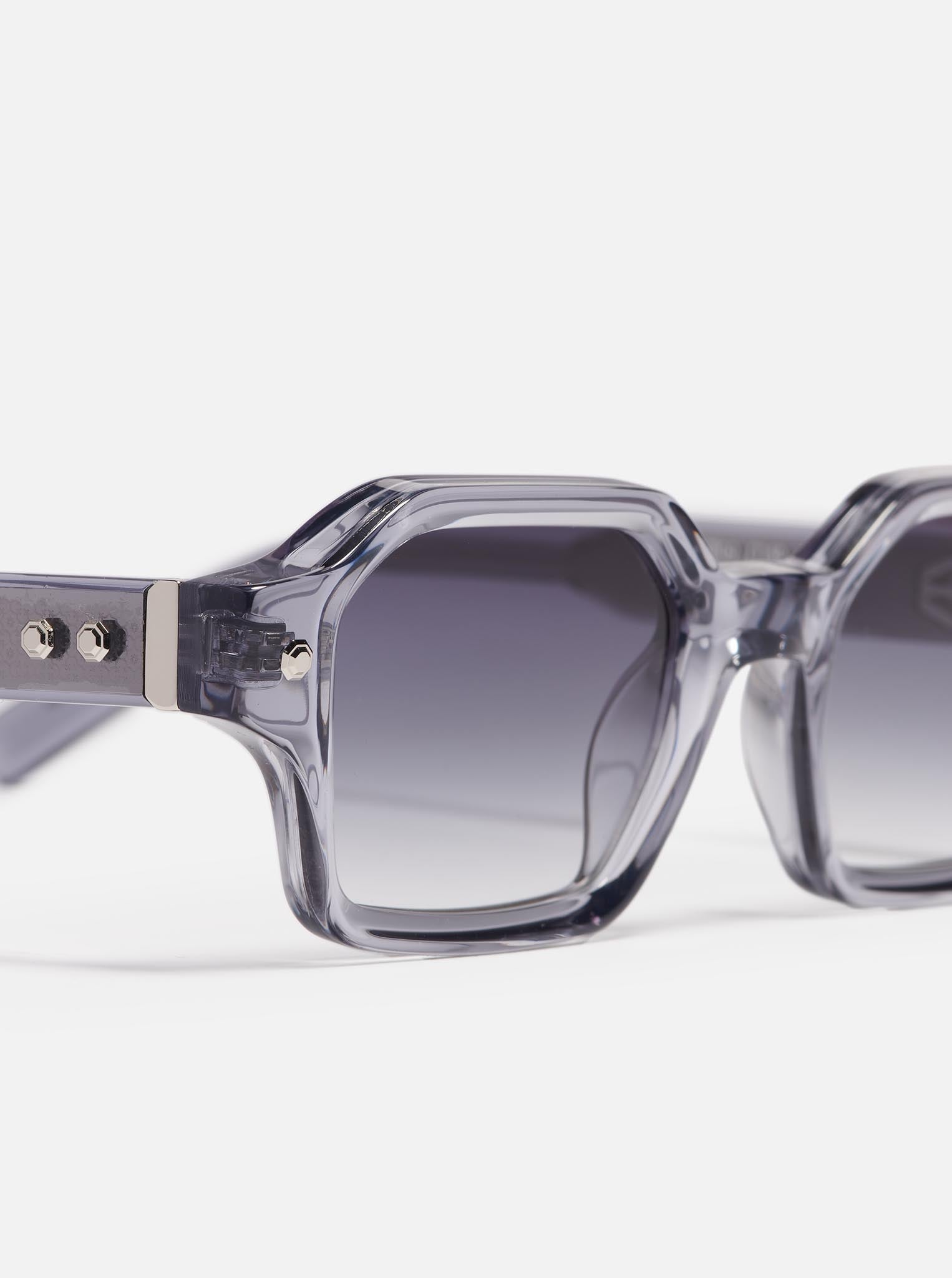 Project 09 is a unisex frame crafted from an 8mm acetate sheet. It features a rectangular shape, a signature John Dalia armature and hinges, as well as decorative pins.