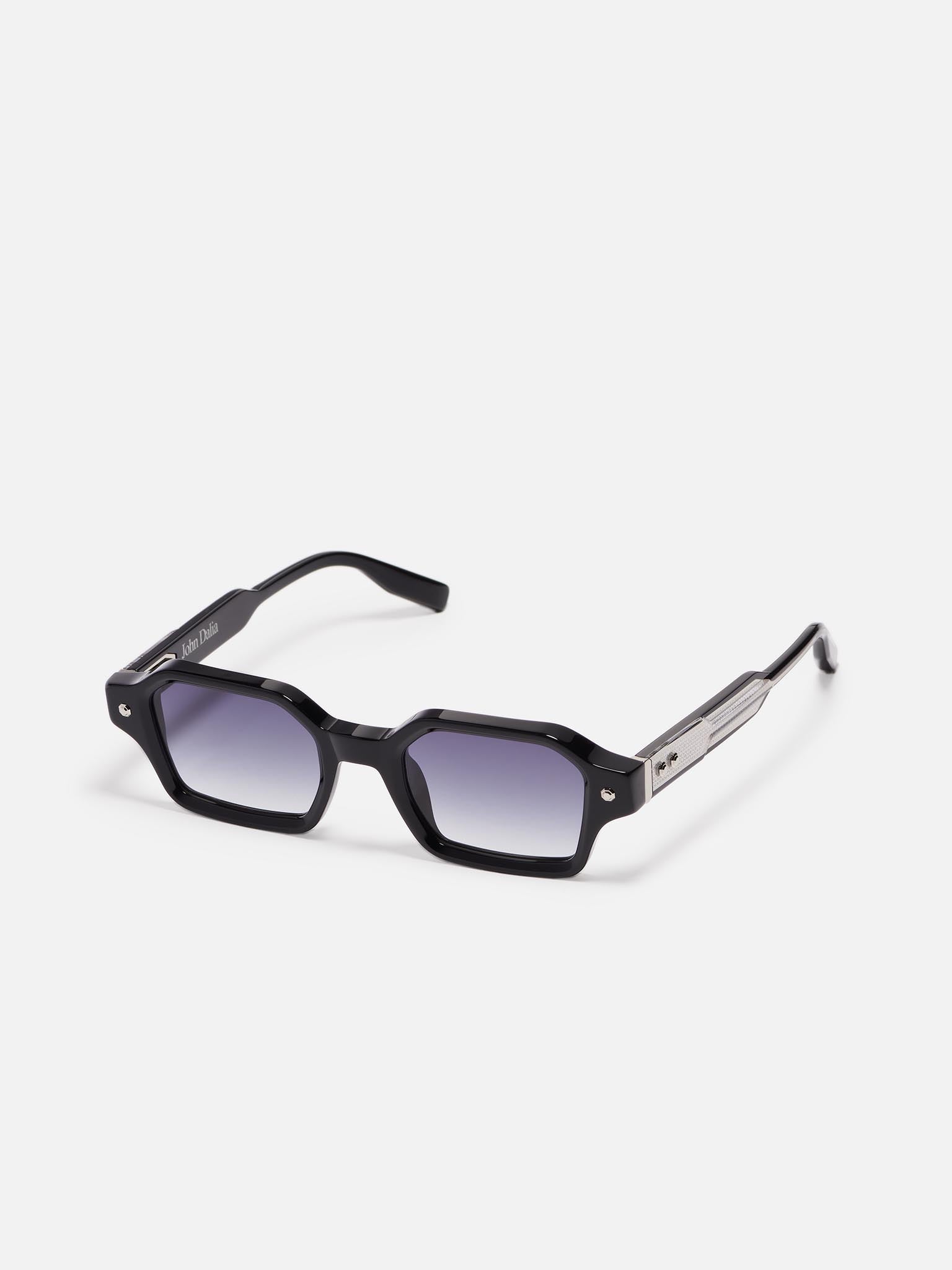 Project 09 is a unisex frame crafted from an 8mm acetate sheet. It features a rectangular shape, a signature John Dalia armature and hinges, as well as decorative pins.