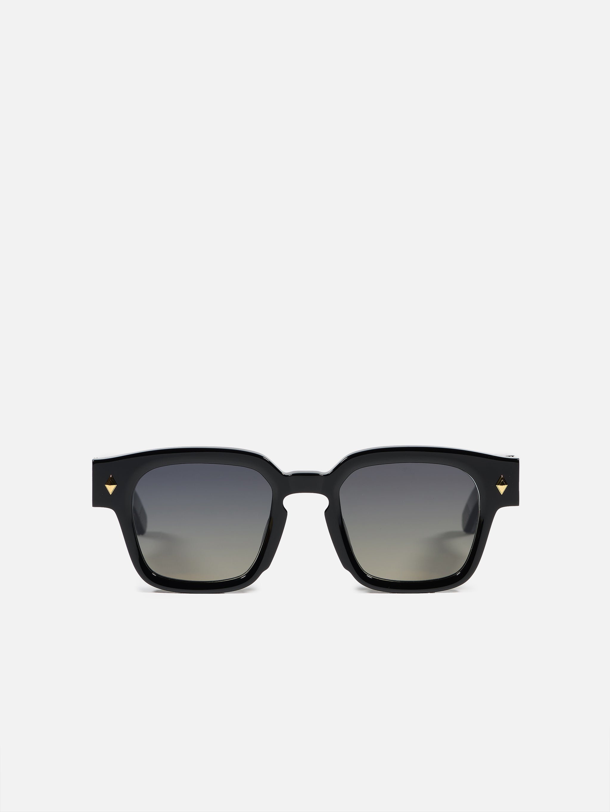 Color C603 - Shiny black with a crystal collage on the outside of the temple and Polarized Gradient Gray lenses, subtly enhanced by a gold hinge for a touch of timeless sophistication.