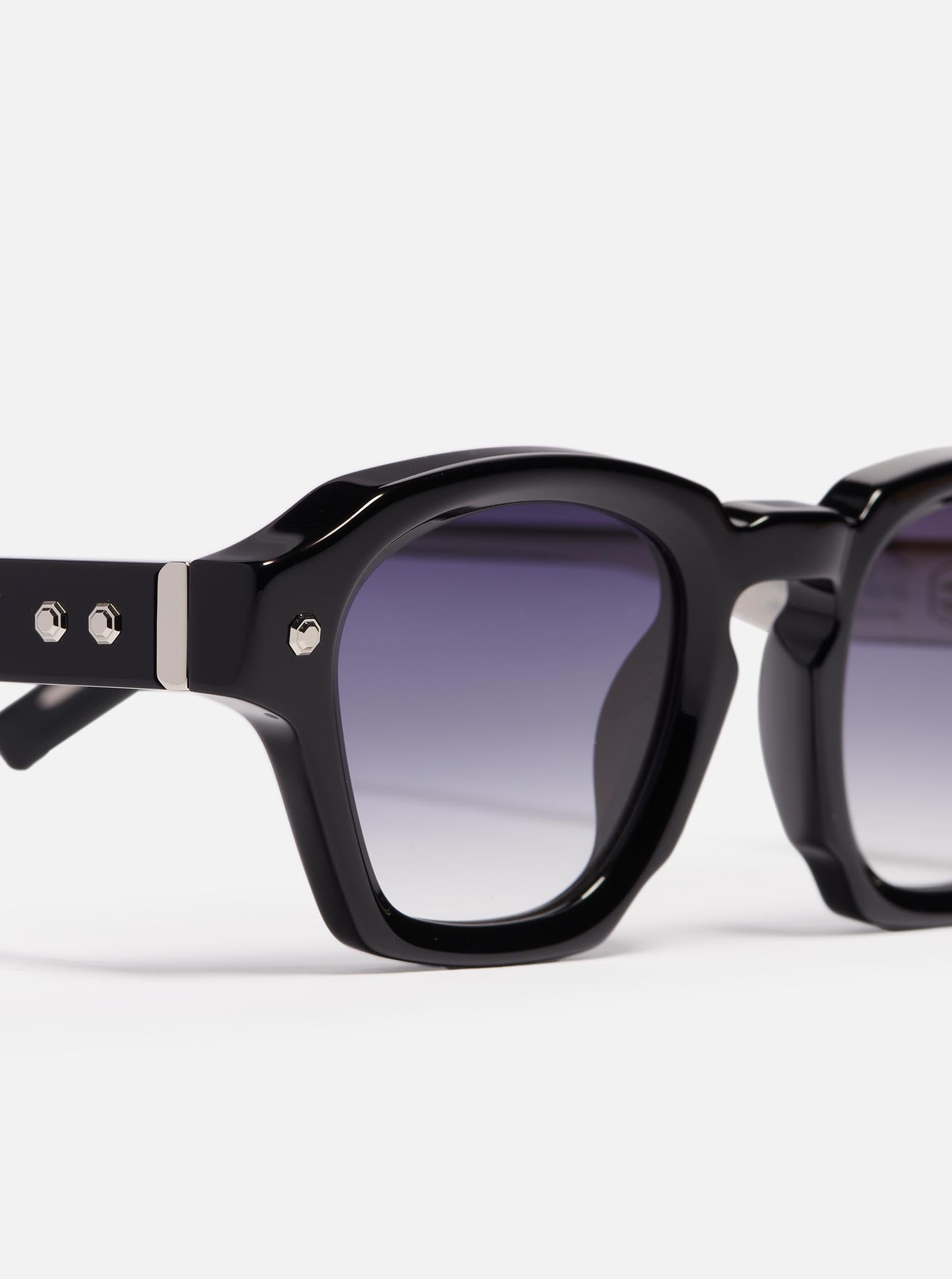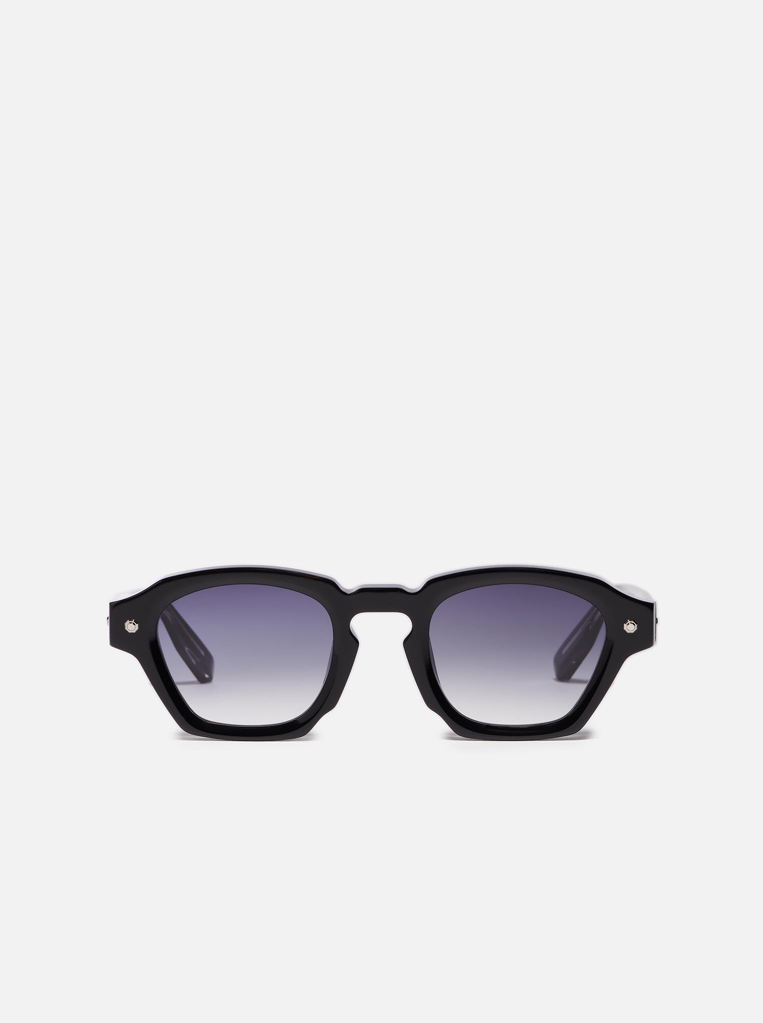 Project 11 is a unisex frame crafted from an 8mm acetate sheet. It features a geometric shape, a signature John Dalia armature and hinges, as well as decorative pins.