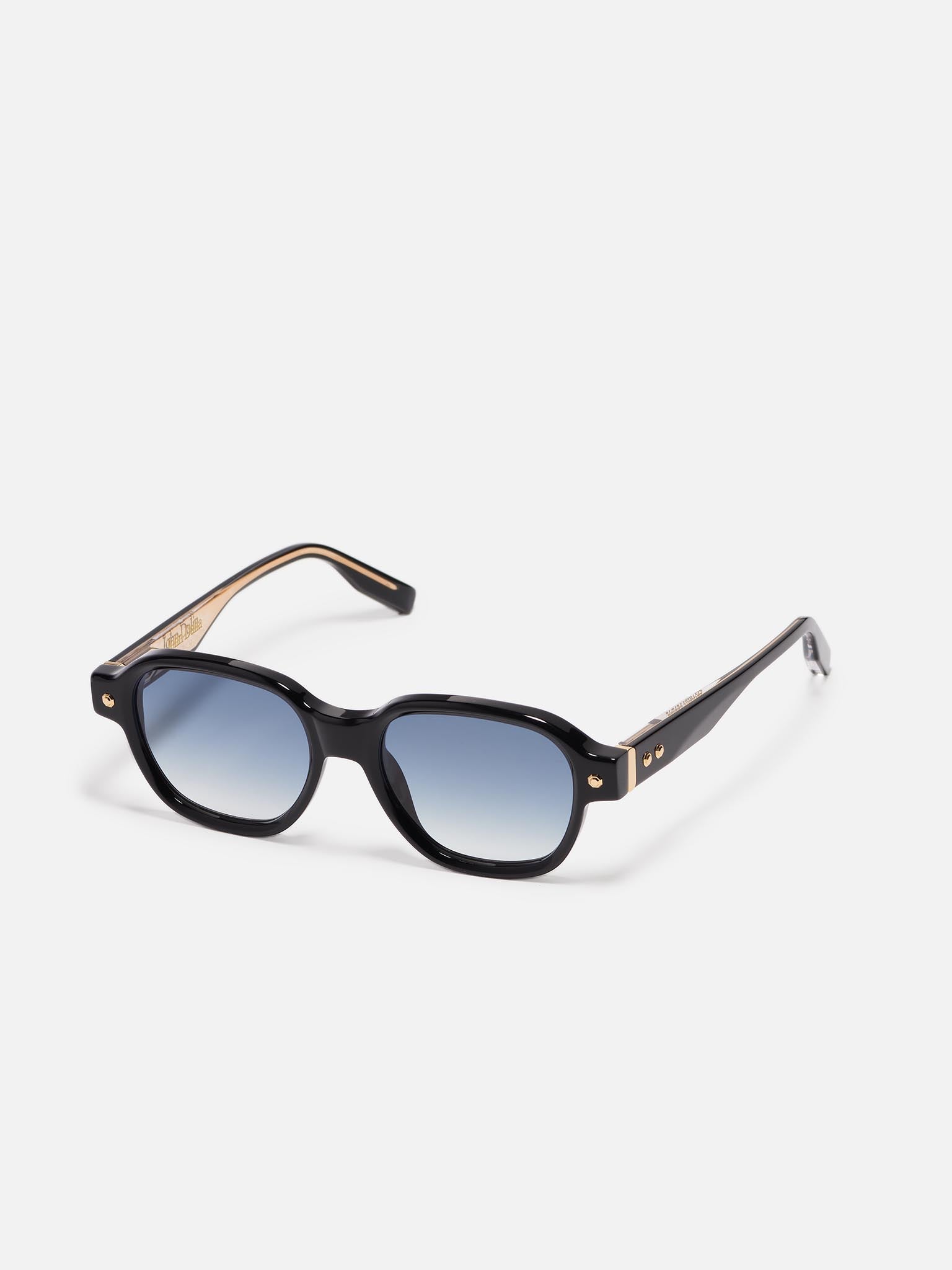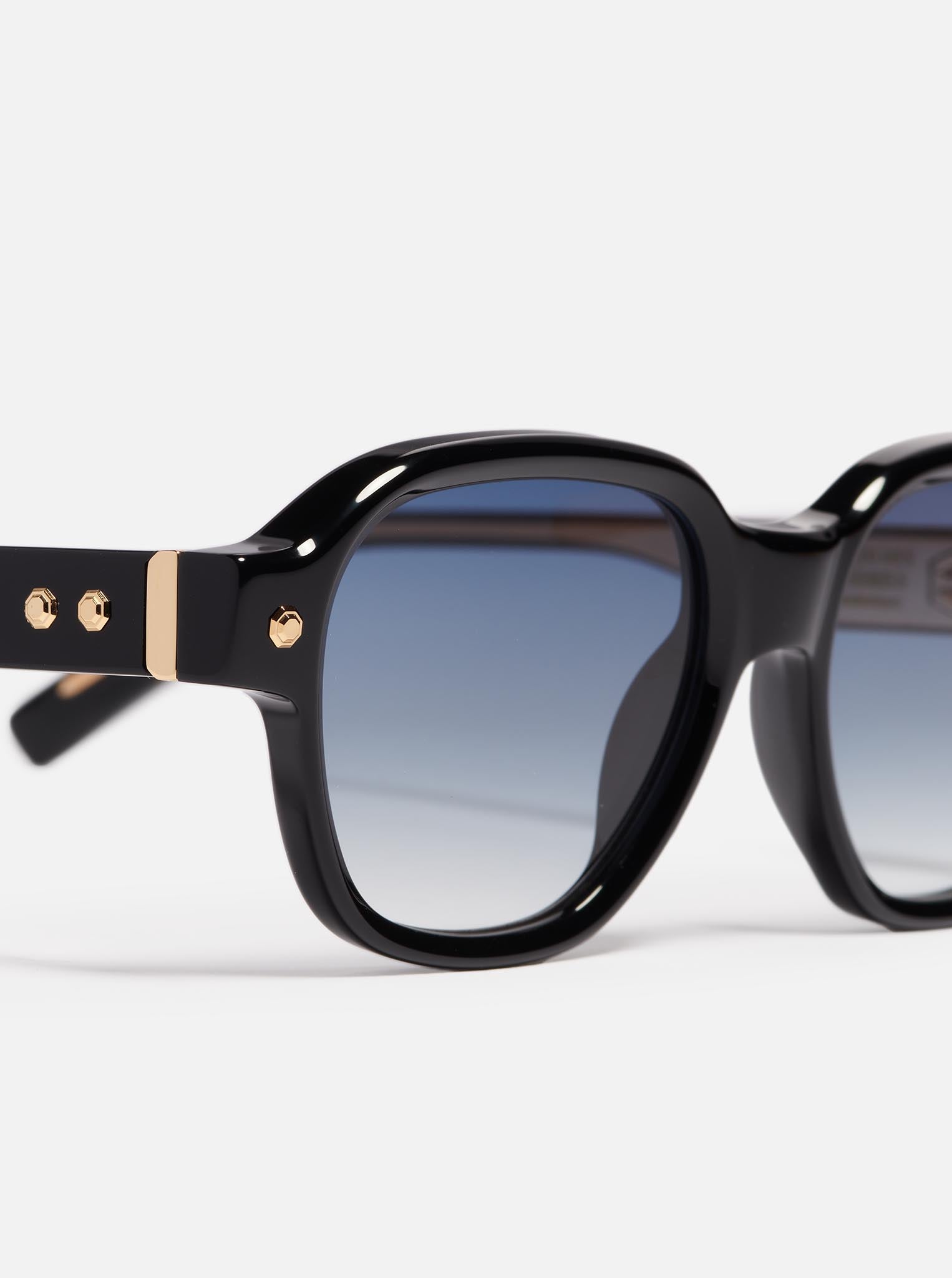 Shiny black acetate. Corewire, decorative elements in yellow gold colored stainless steel.