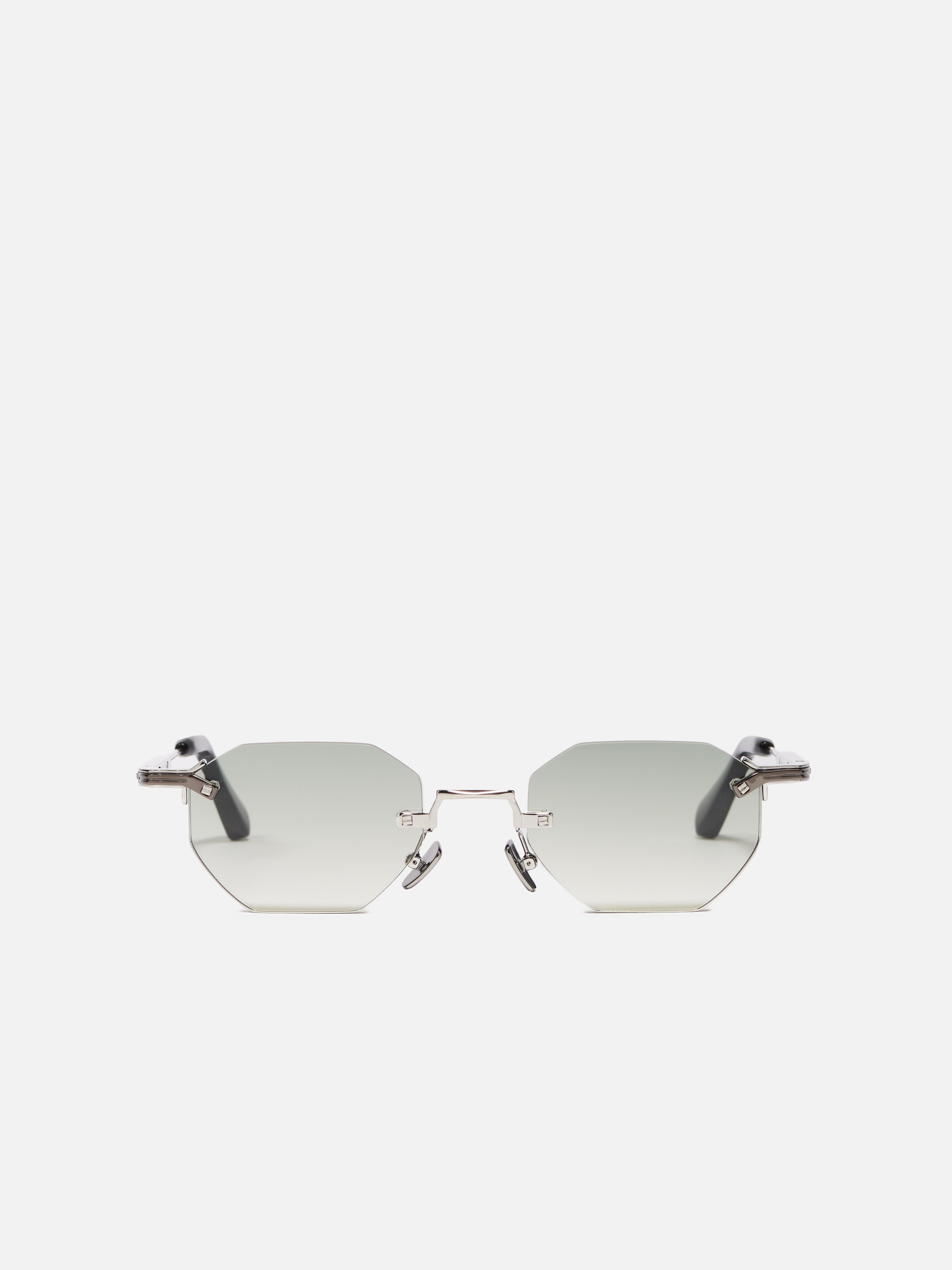 The metal corewire is made of stainless steel with a silver plating (3µ). Inserts on the temples, end pieces and nose pads in gunmetal colored. Temple tips in infinite black acetate.