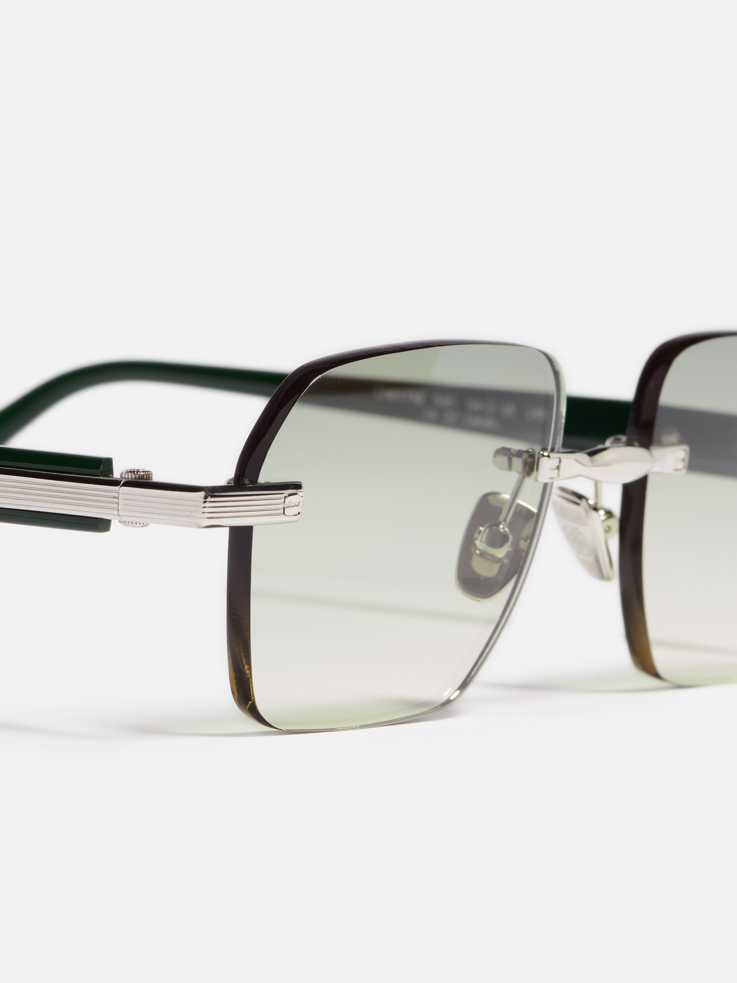 The metal corewire is made of stainless steel with a silver plating (3µ). Dark green acetate temple tips.