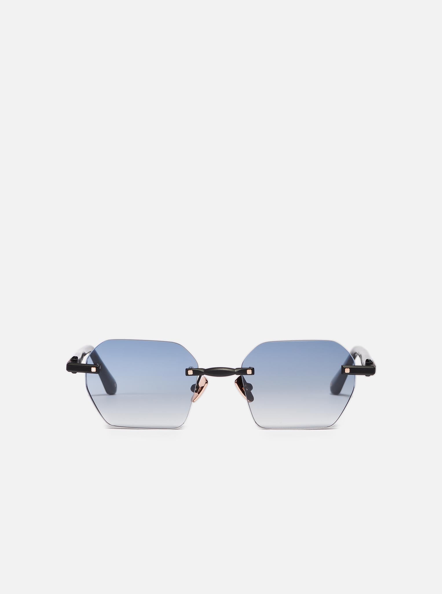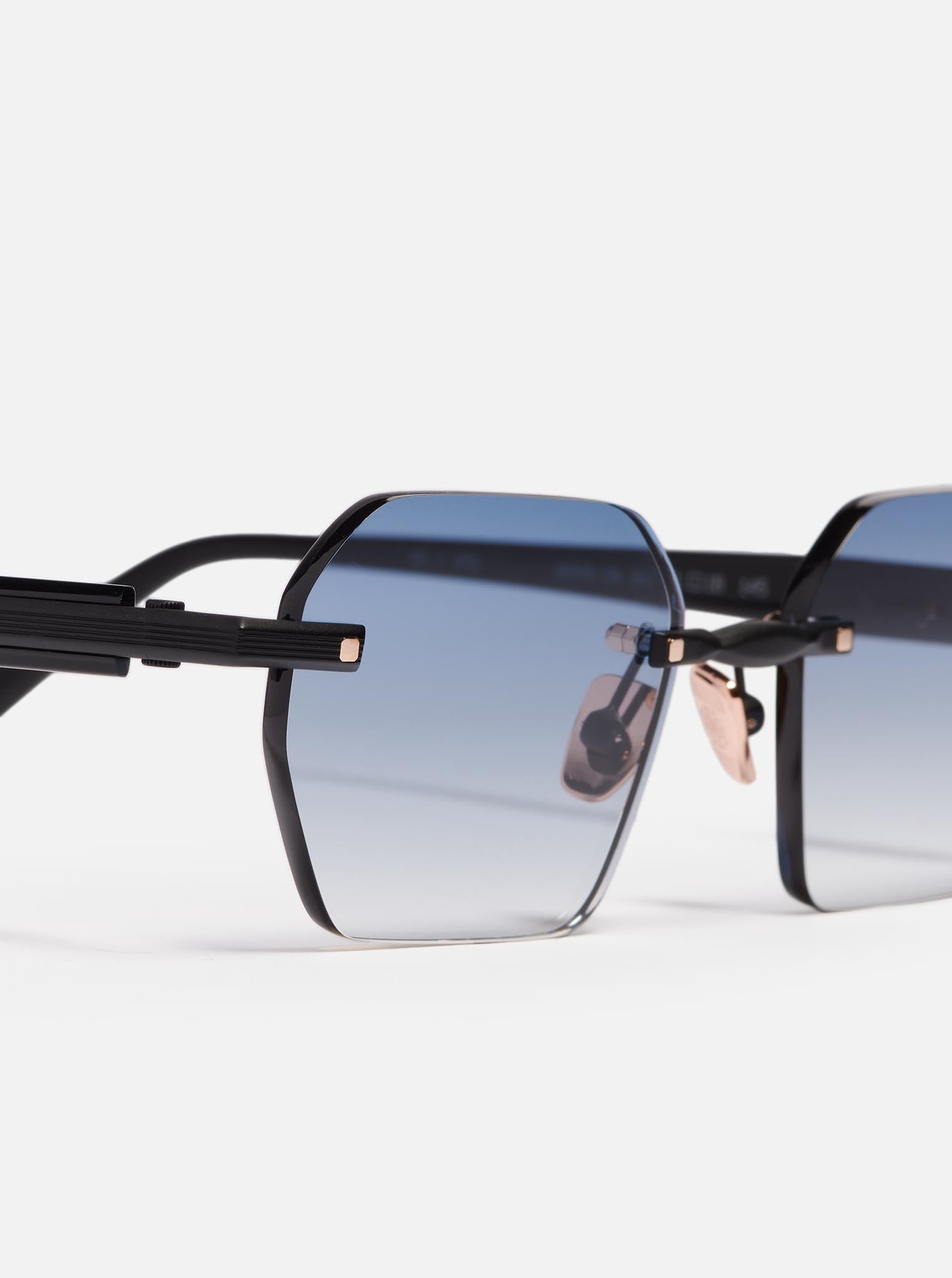 The structure is crafted from black stainless steel with a carbon-effect finish. The temple tips are made of black acetate, while the nose pads come in a rose gold color.