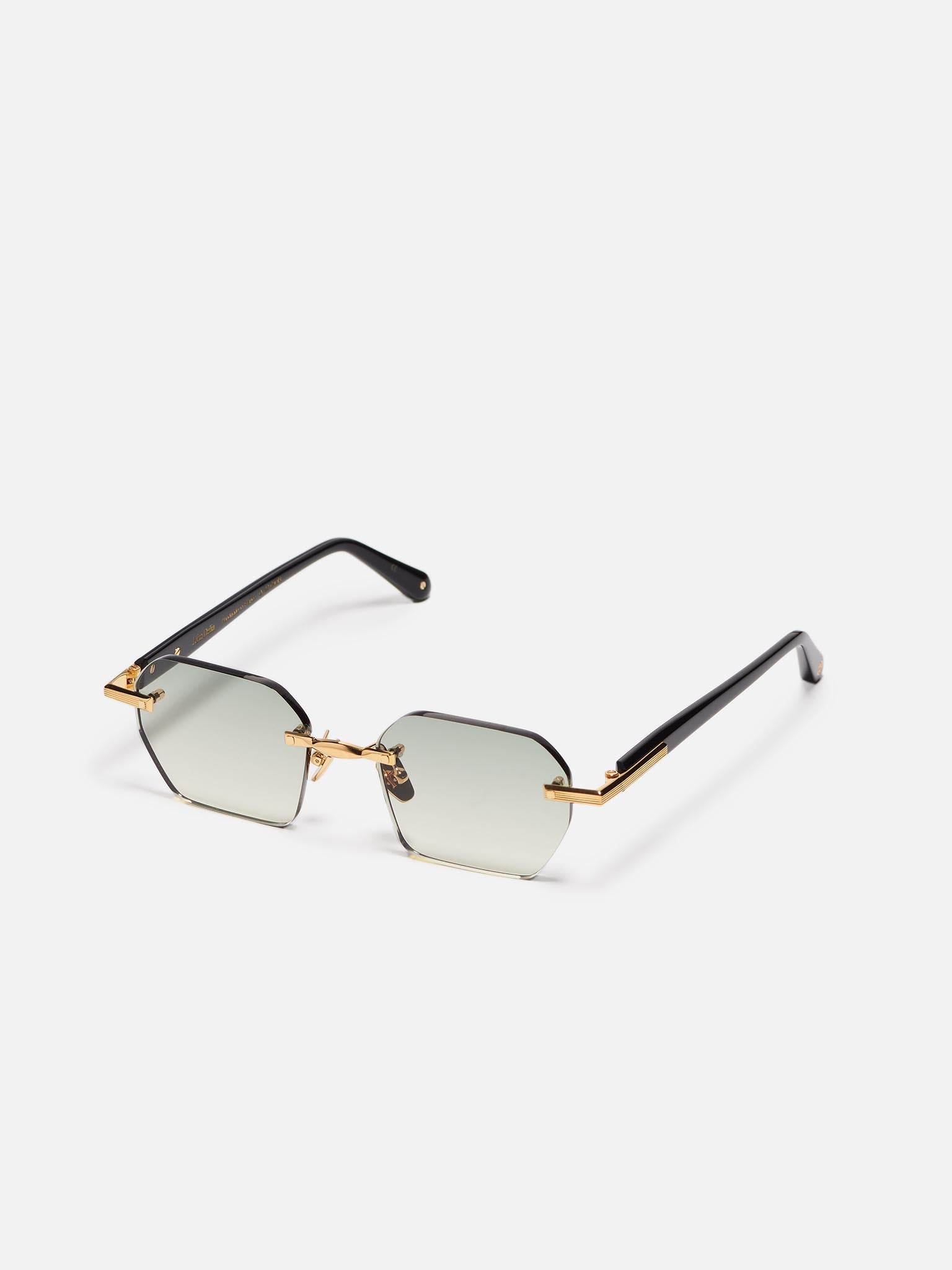 The structure is crafted from yellow gold-plated stainless steel (5µ) with a jeweler’s hallmark on the inside of the temple. The temple tips are made of black acetate, while the nose pads come in a yellow gold color.