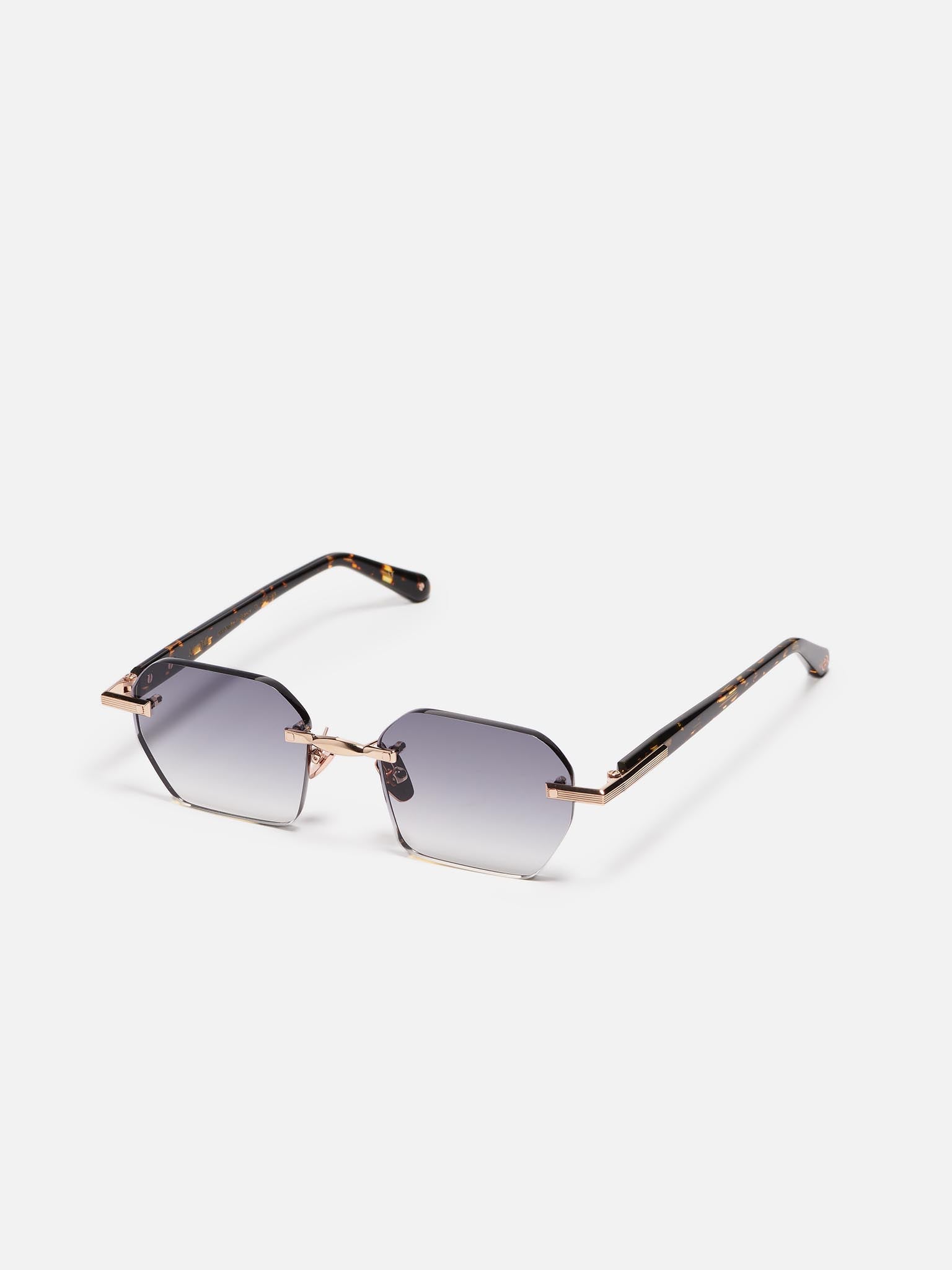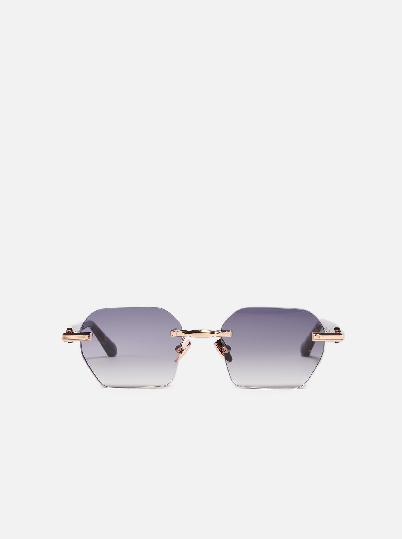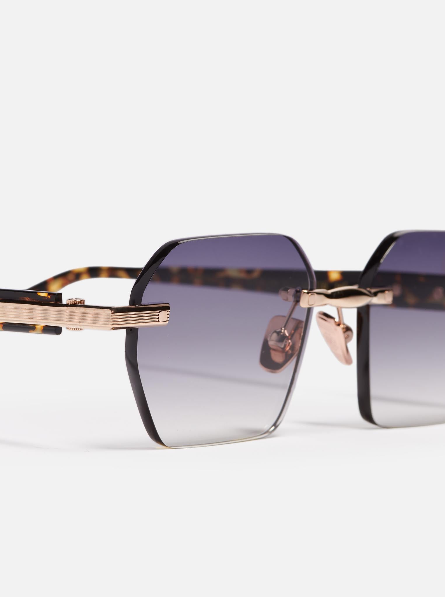 The structure is crafted from rose gold-plated stainless steel (5µ) with a jeweler’s hallmark on the inside of the temple. The temple tips are made of tortoiseshell acetate, while the nose pads come in a matching rose gold color.