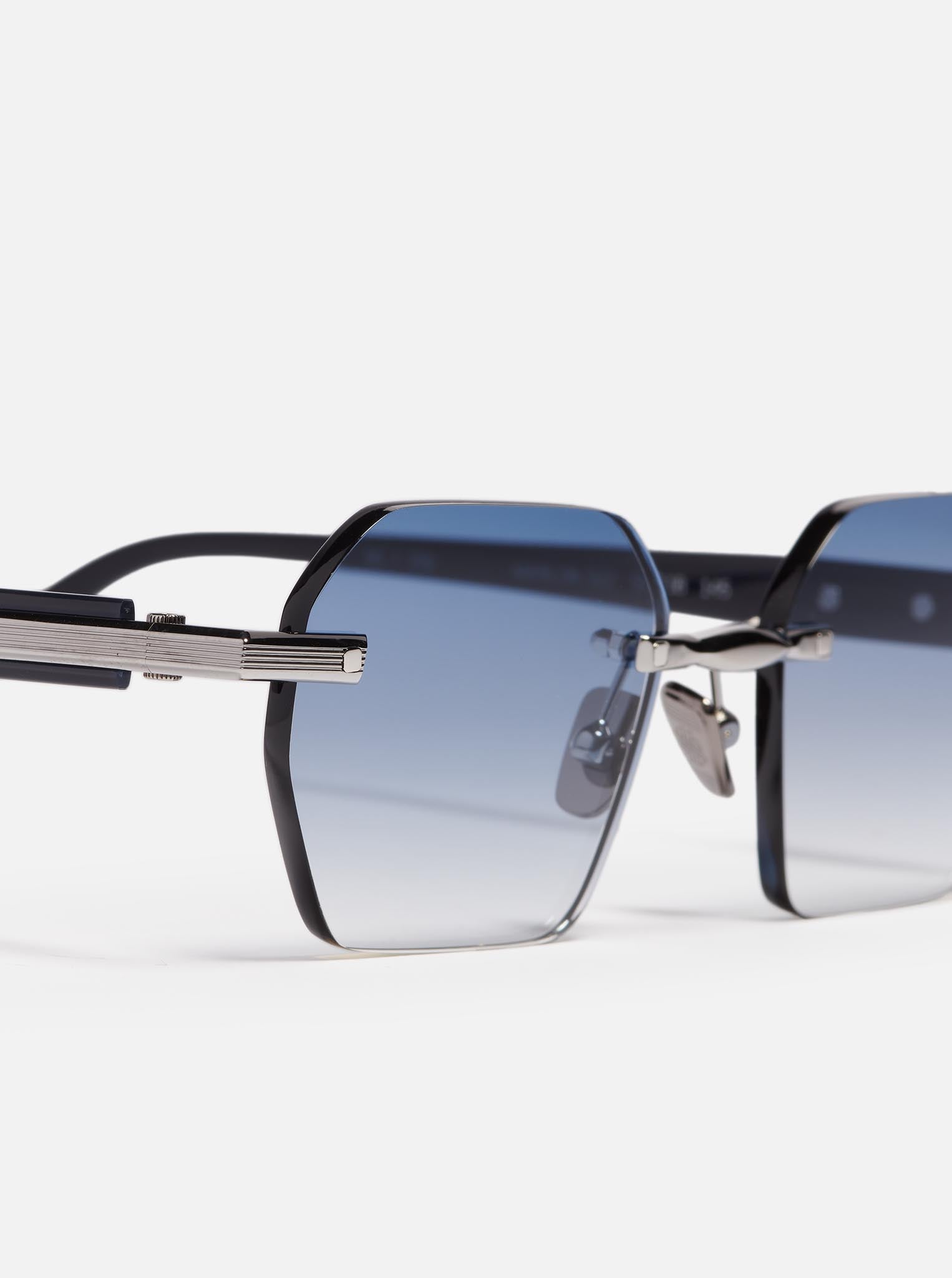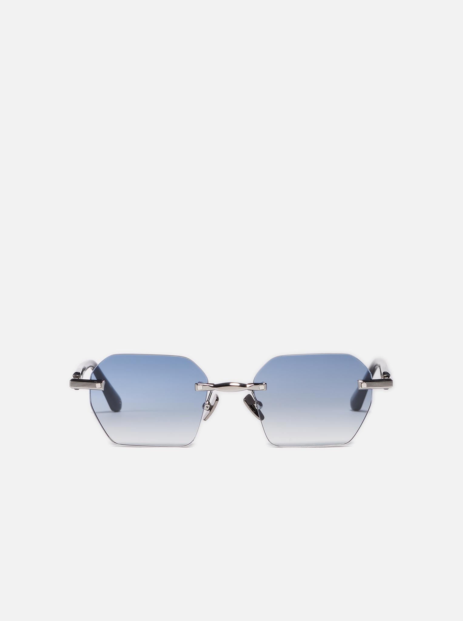 Unisex rimless rectangular frame. Featuring a wide, textured bridge and temples, along with long acetate temple tips for enhanced comfort.
