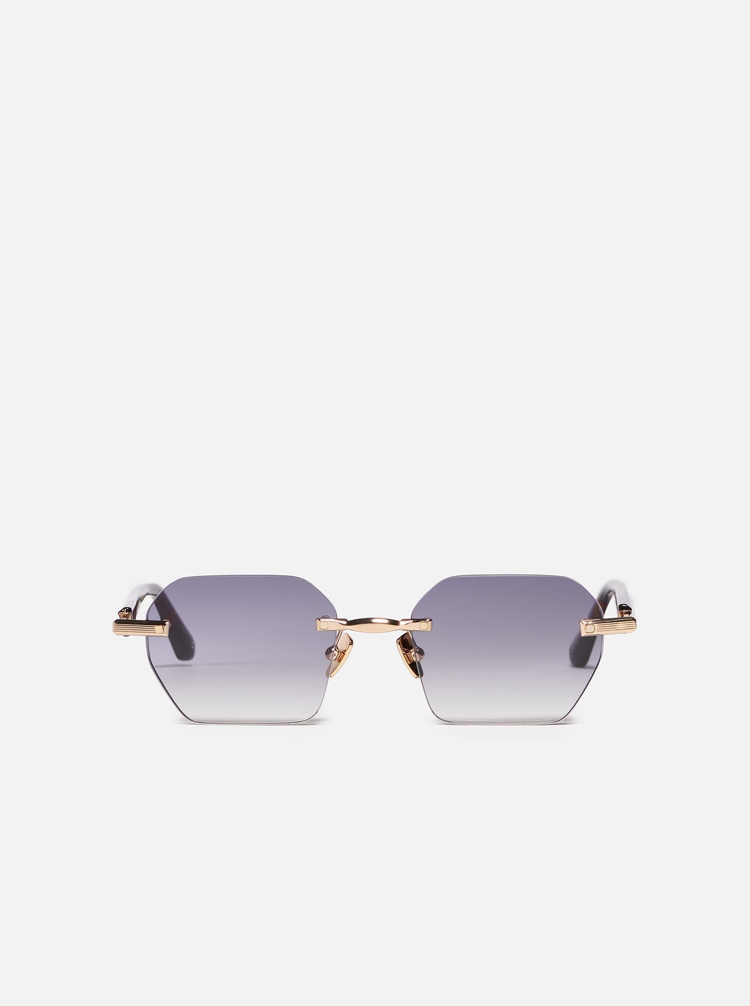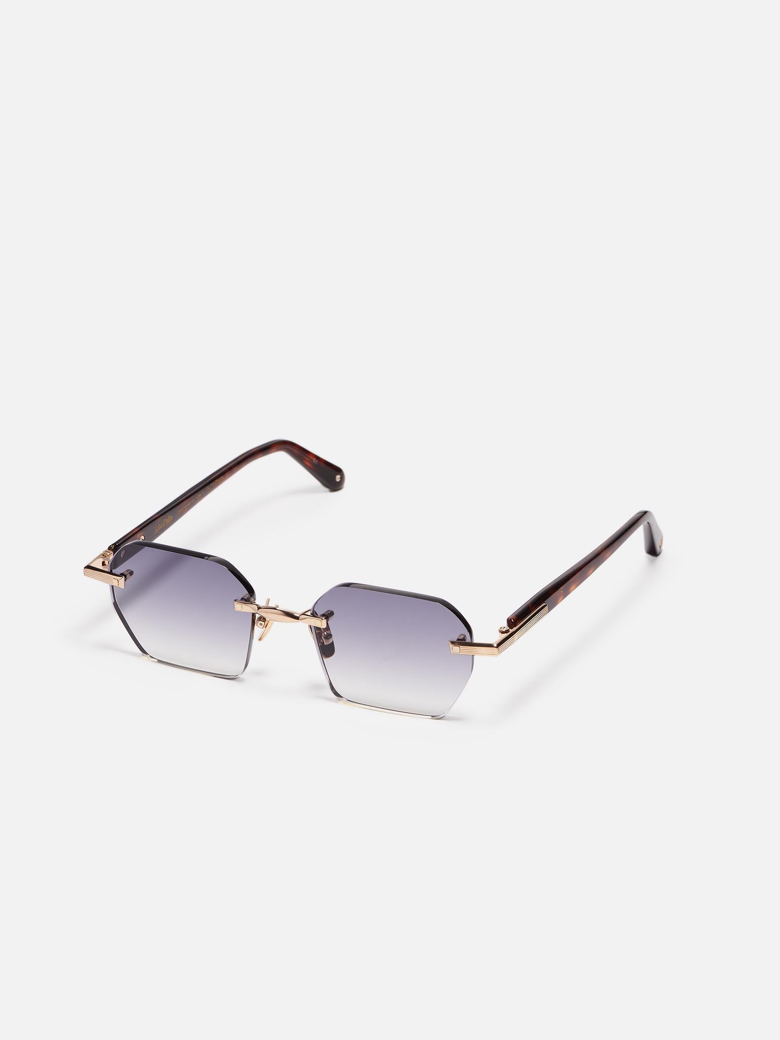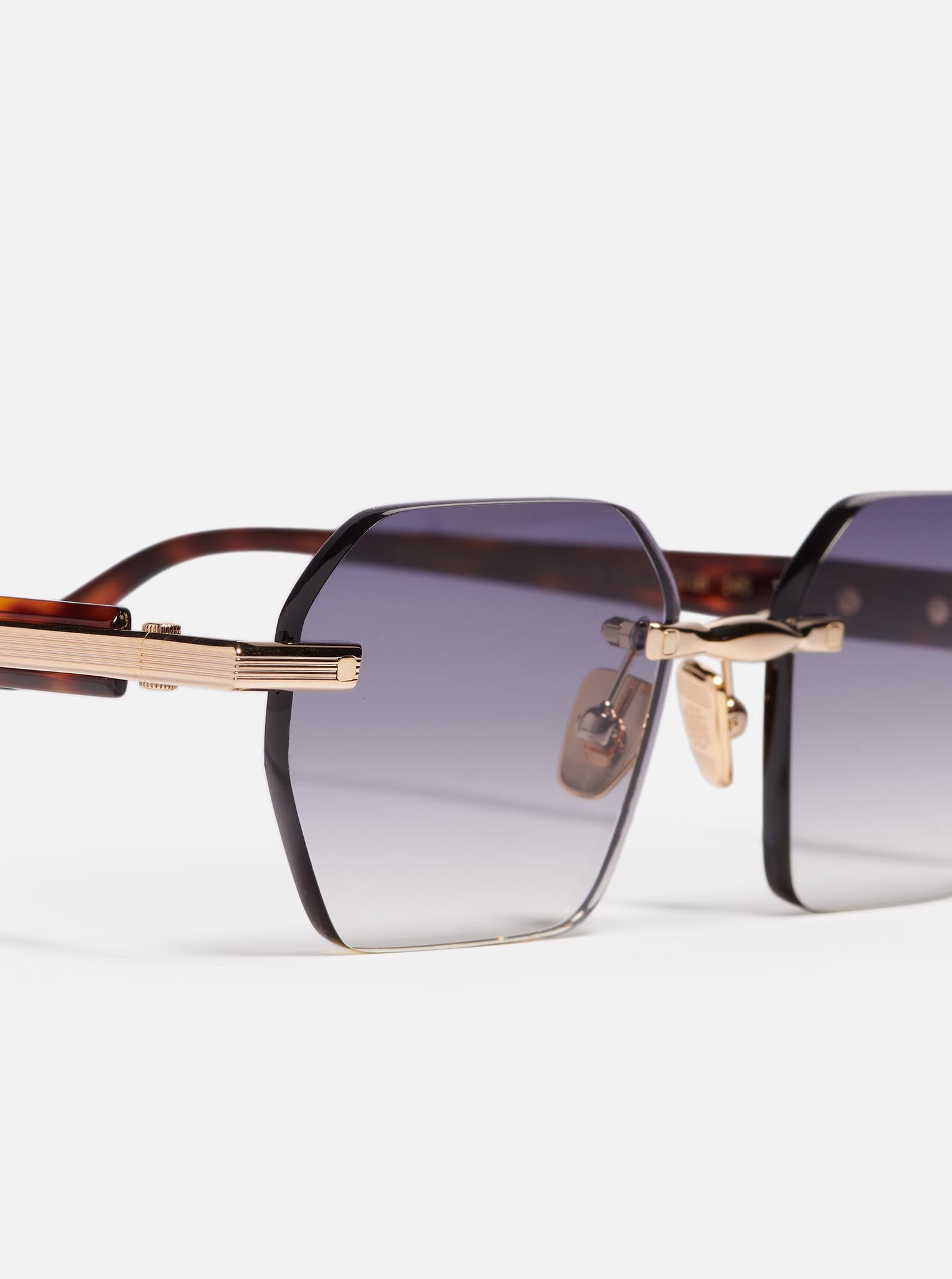 The structure is crafted from brushed gold-plated stainless steel (5µ) with a jeweler’s hallmark on the inside of the temple. The temple tips are made of dark tortoiseshell acetate, while the nose pads come in a matching gold color.