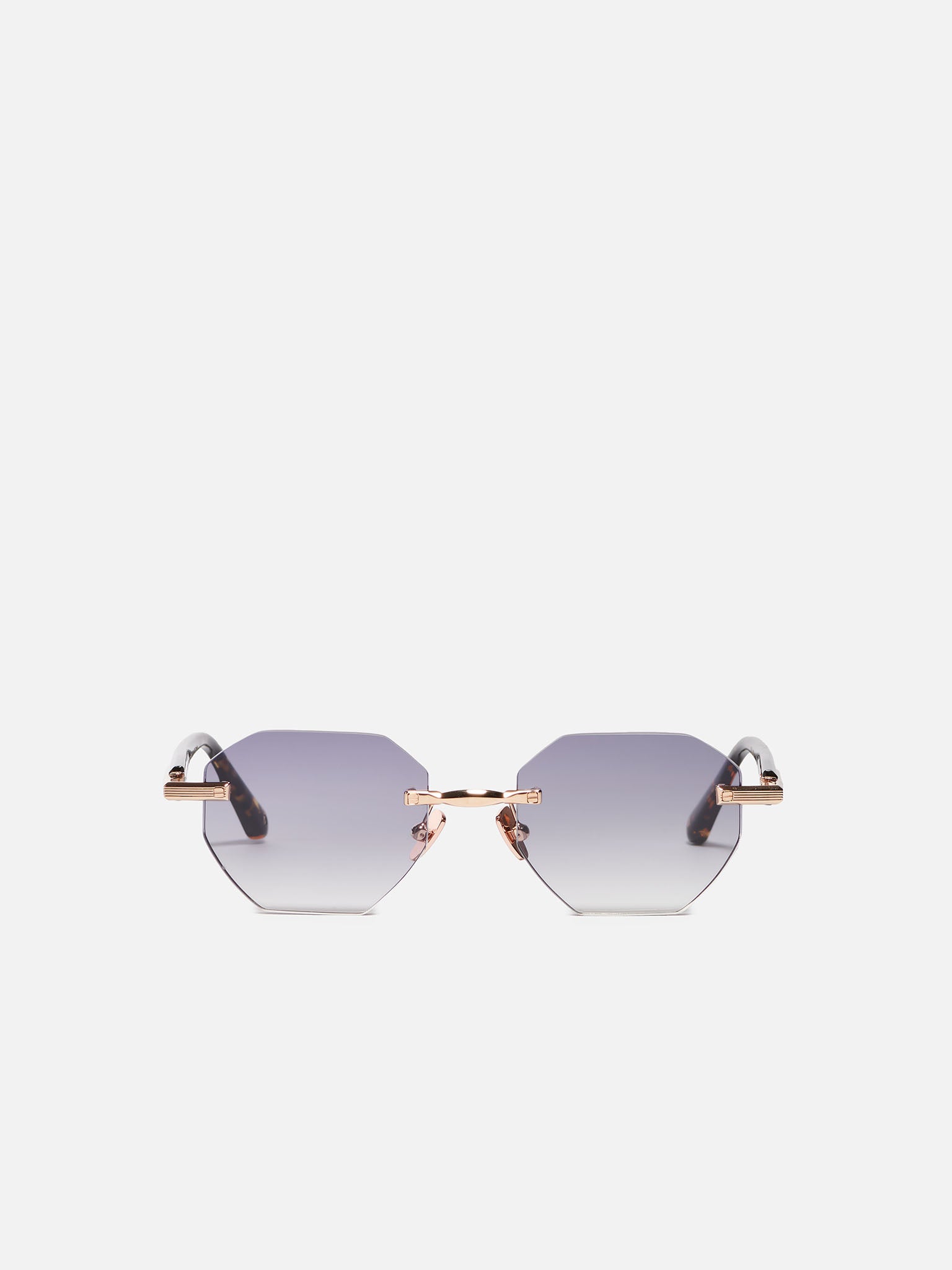 The metal corewire is made of stainless steel with a rose gold plating (5µ, with jeweler's stamp on the inner temple). Scales tortoise acetate temple tips.