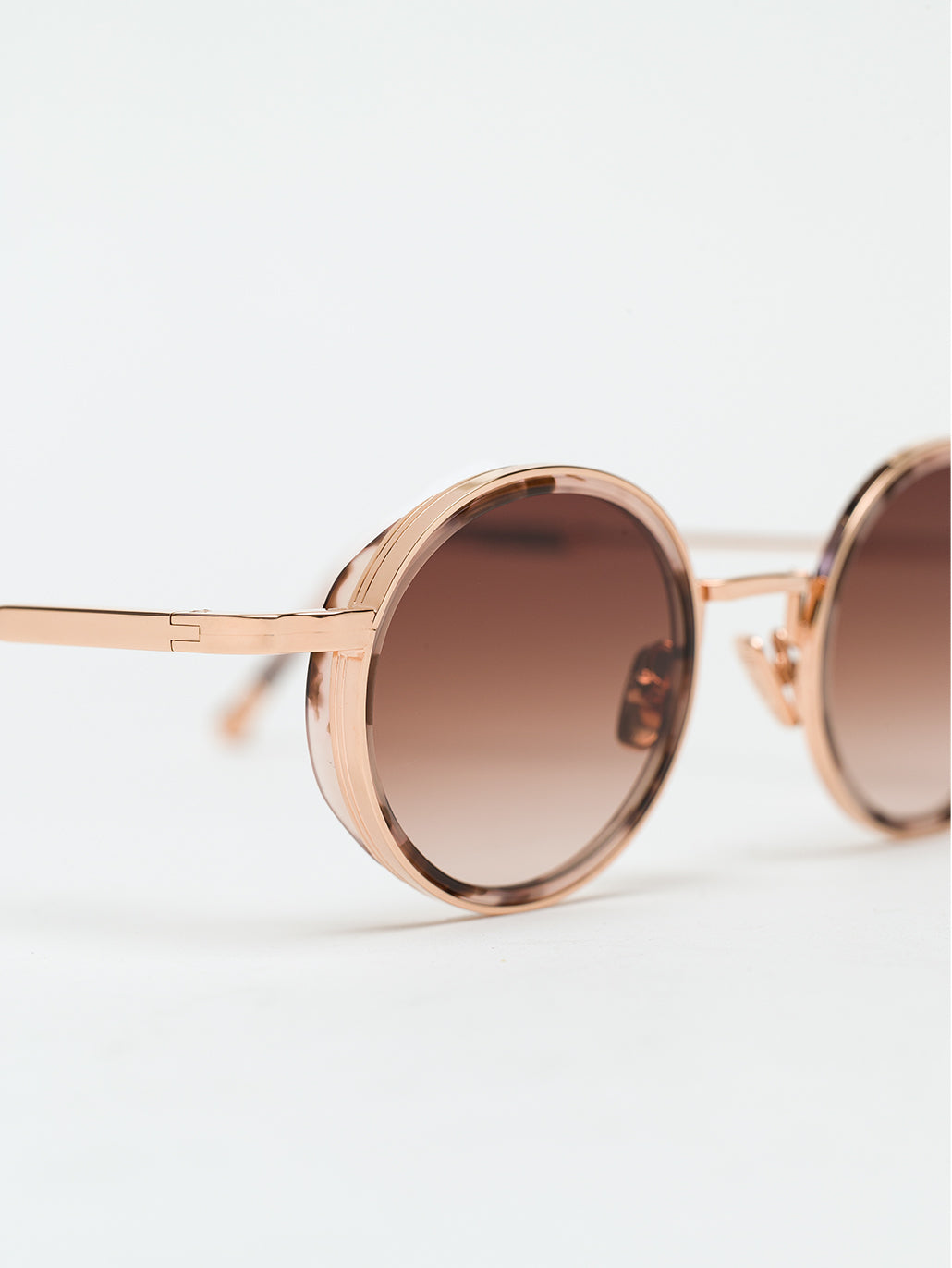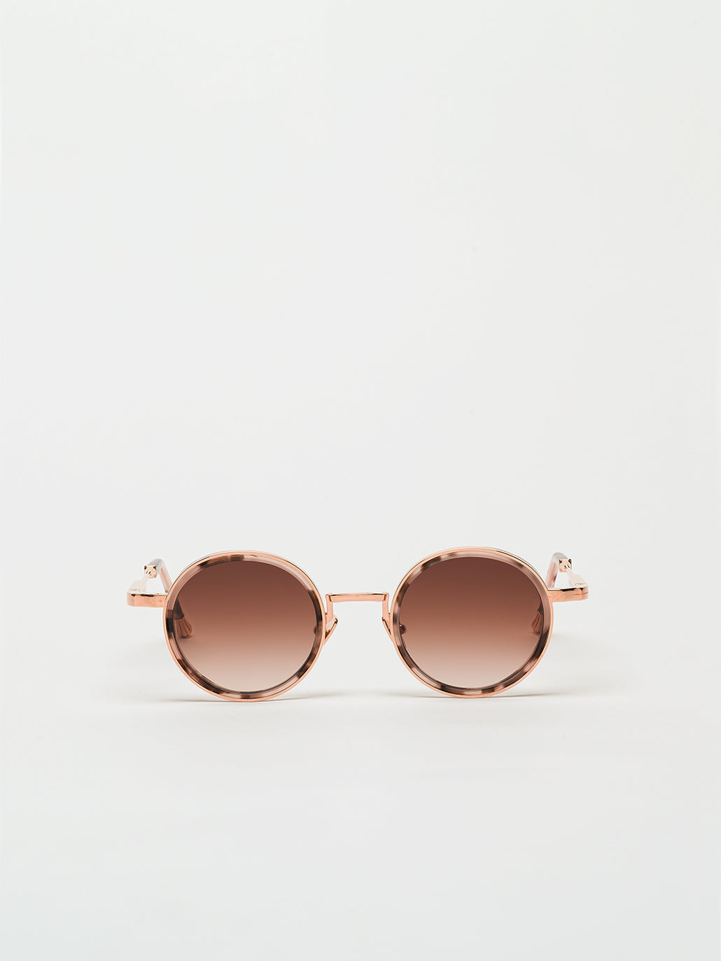 The metal corewire is made of stainless steel frame with a rose gold plating (5µ, with a jeweler’s stamp inside the temple). Temple tips and eye rims in rose tortoise acetate.