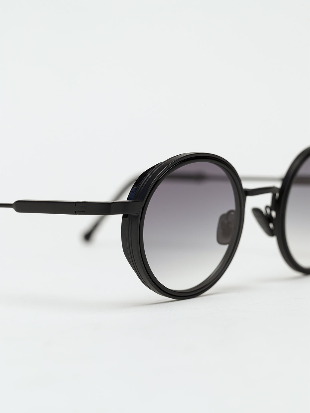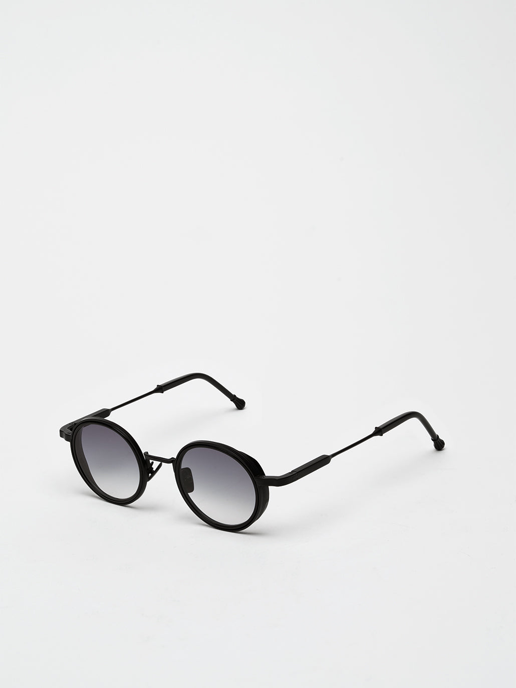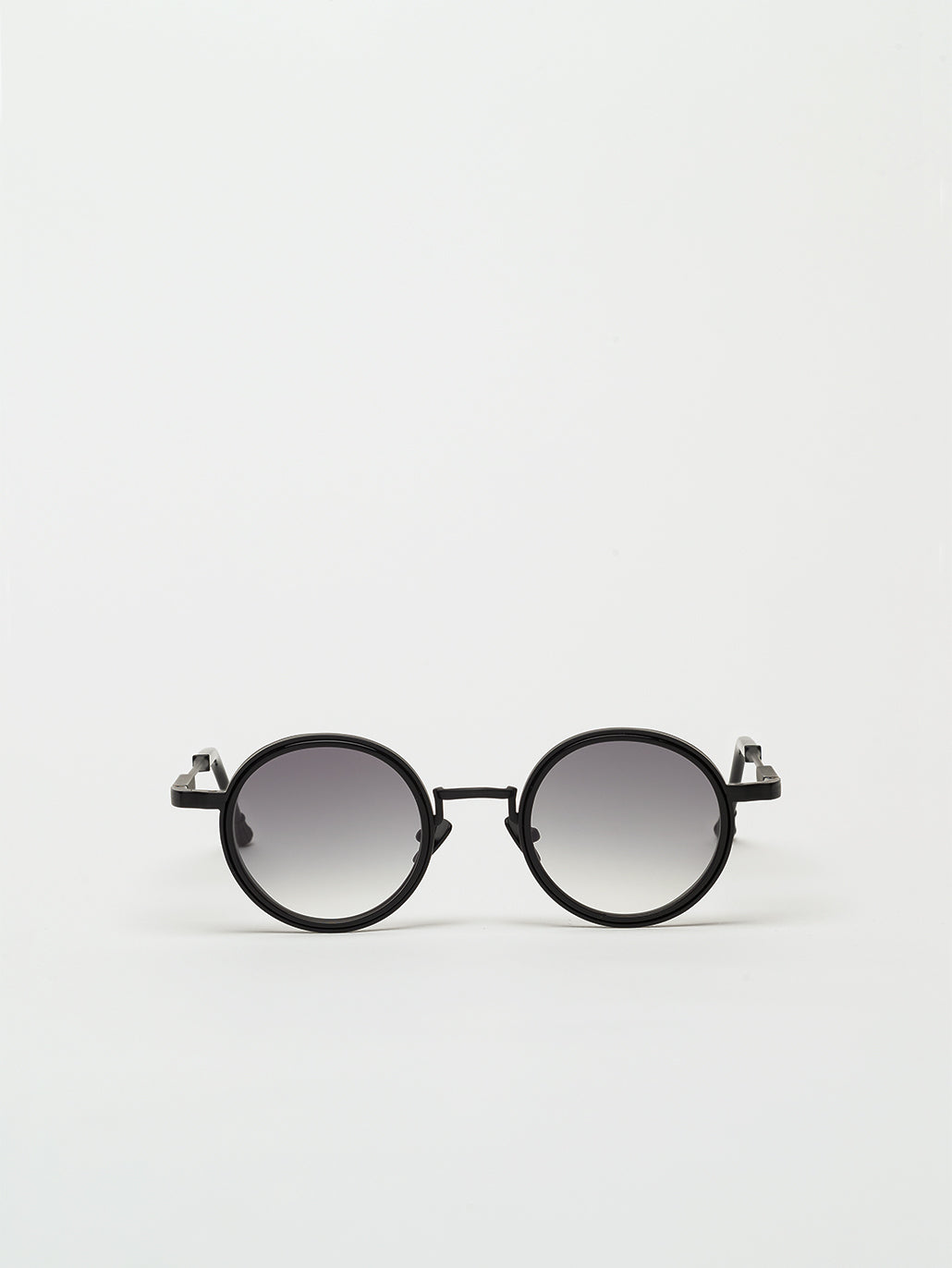 The metal corewire is made of stainless steel frame with a carbon black finish. Temple tips and eye rims in infinite black acetate.