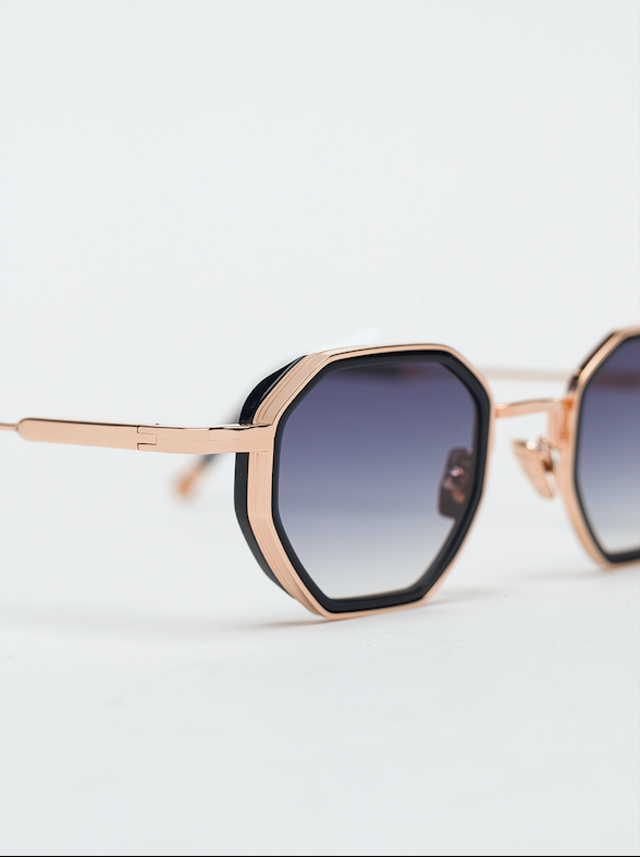 The metal corewire is made of stainless steel frame with a 22-carat rose gold plating (c. 5µ layer and jewelry stamp inside the temple). The frame is enlivened by our new signature temples featuring John Dalia’s engraved end pieces.