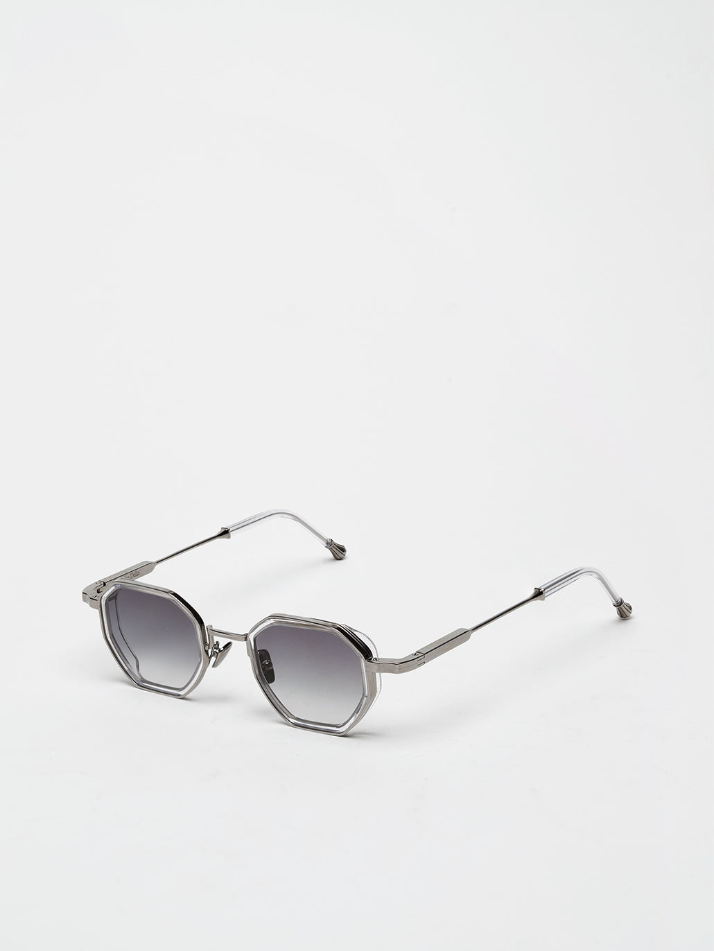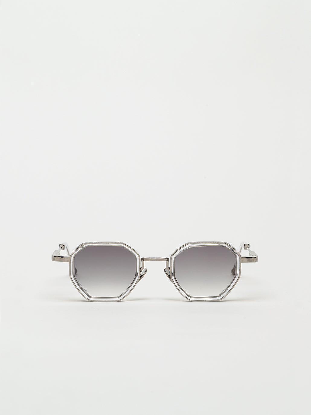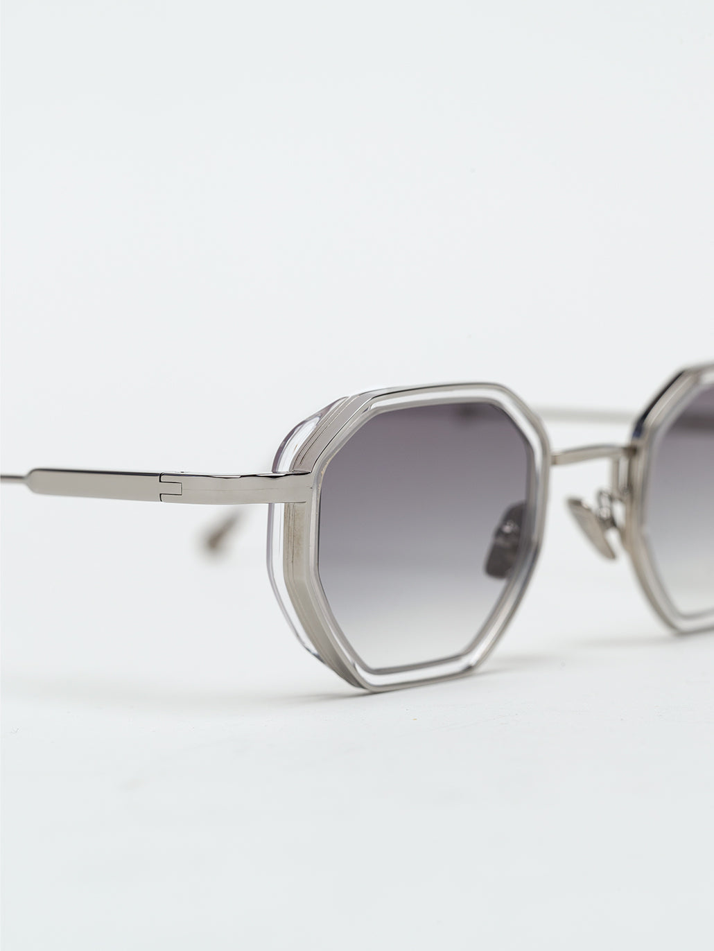 A unisex octogonal shape with acetate rims cut that stands out from the 4mm streak-engraved metal.