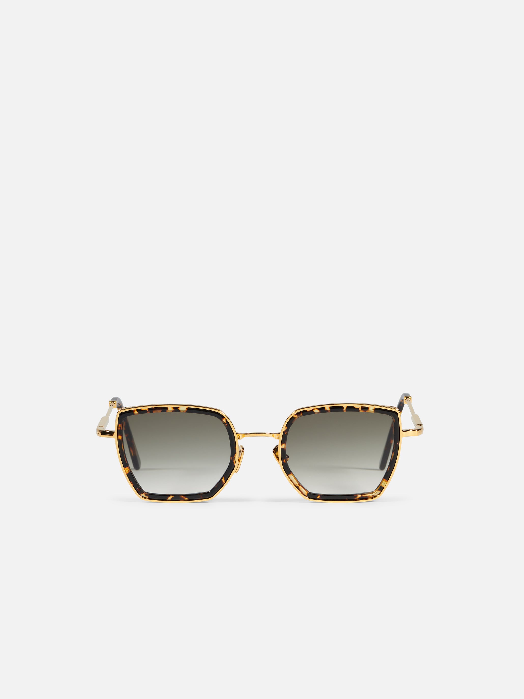Retro-influenced metal butterfly frame for women with acetate rims cut that stands out from the 4mm streak-engraved metal. Custom havana nerves acetate & 22-carat yellow gold-plated alloy frame (c. 5µ layer and jewelry stamp inside the temple). G15 gradient CR39 lenses with AR treatment. Reference C-127. Case and cleaning cloth are included.
