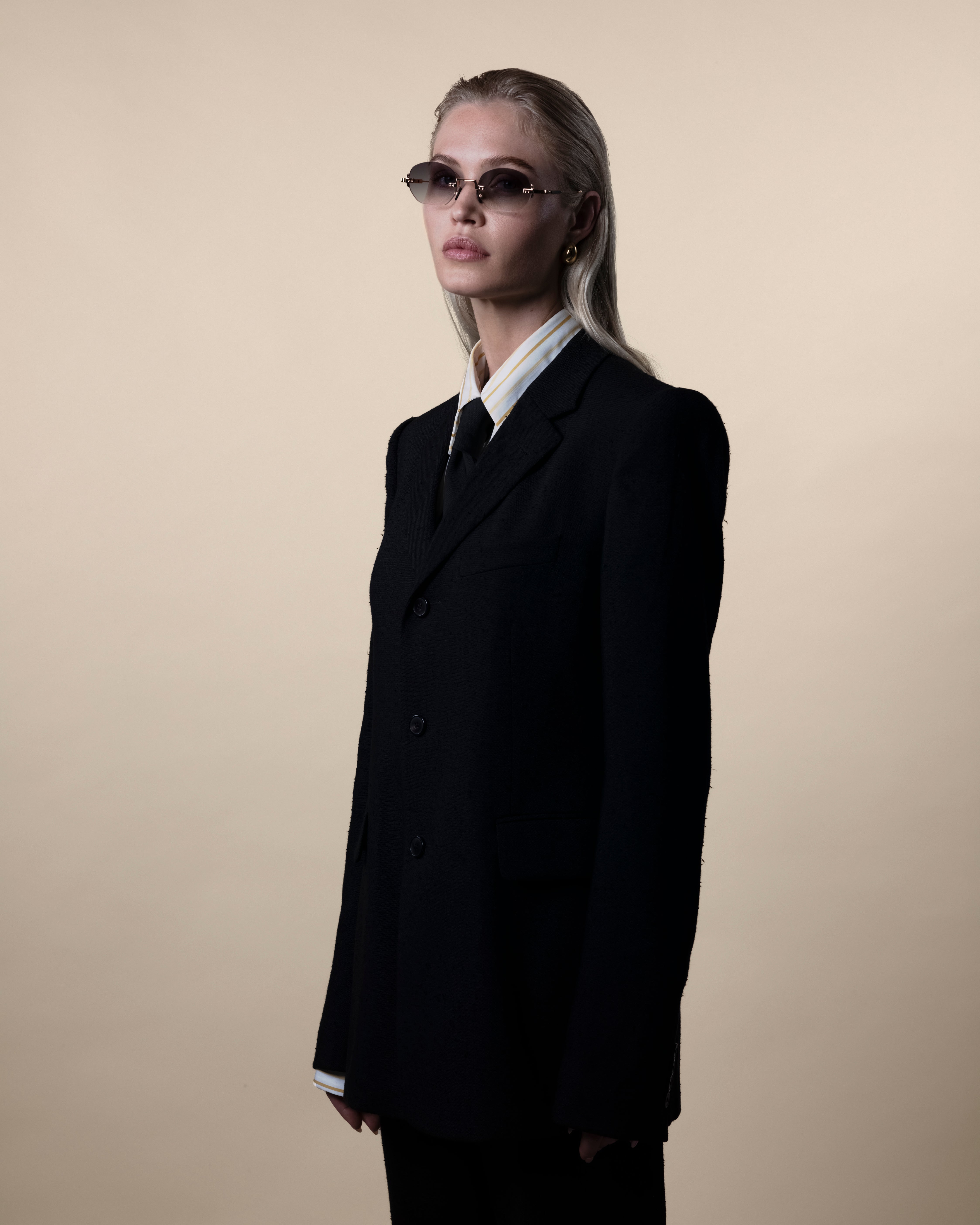 This collection embraces a refined balance, where classic tailoring meets architectural eyewear. Every piece finds its power in subtlety: clean silhouettes, quiet strength, and frames that define without overpowering.