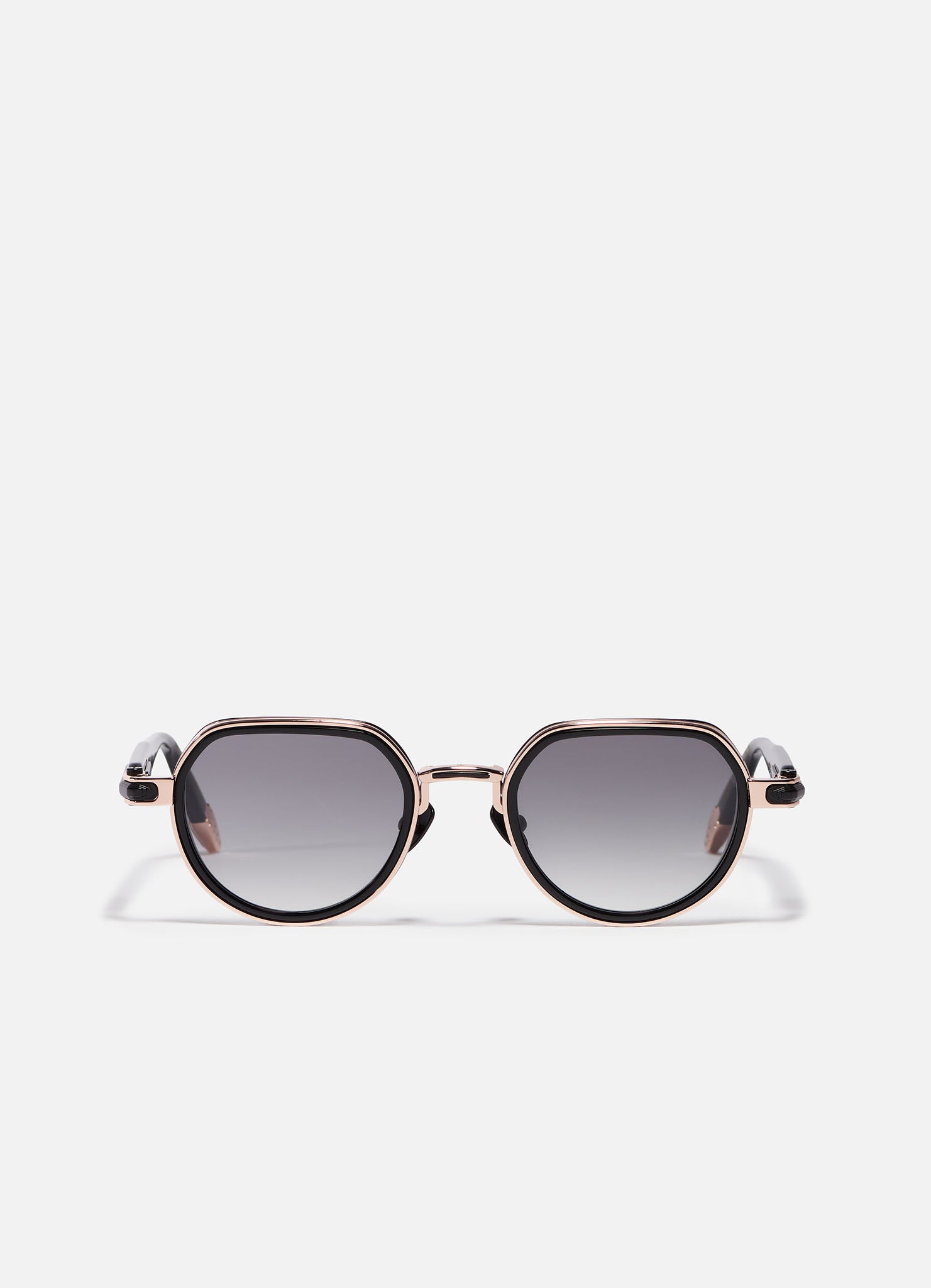 Unisex round shaped frame combining a titanium corewere, metal details and acetate elements in a refined fusion of materials.