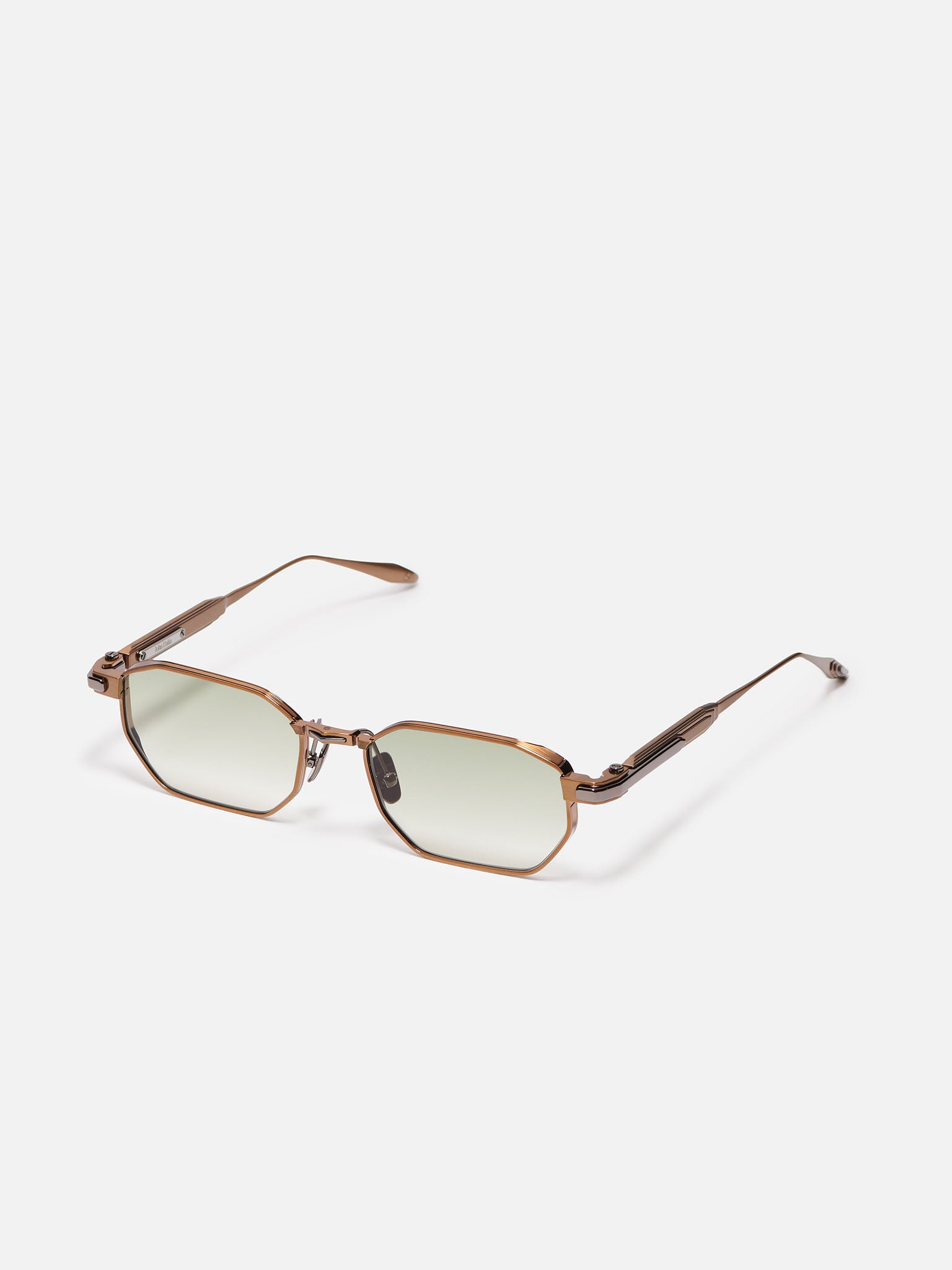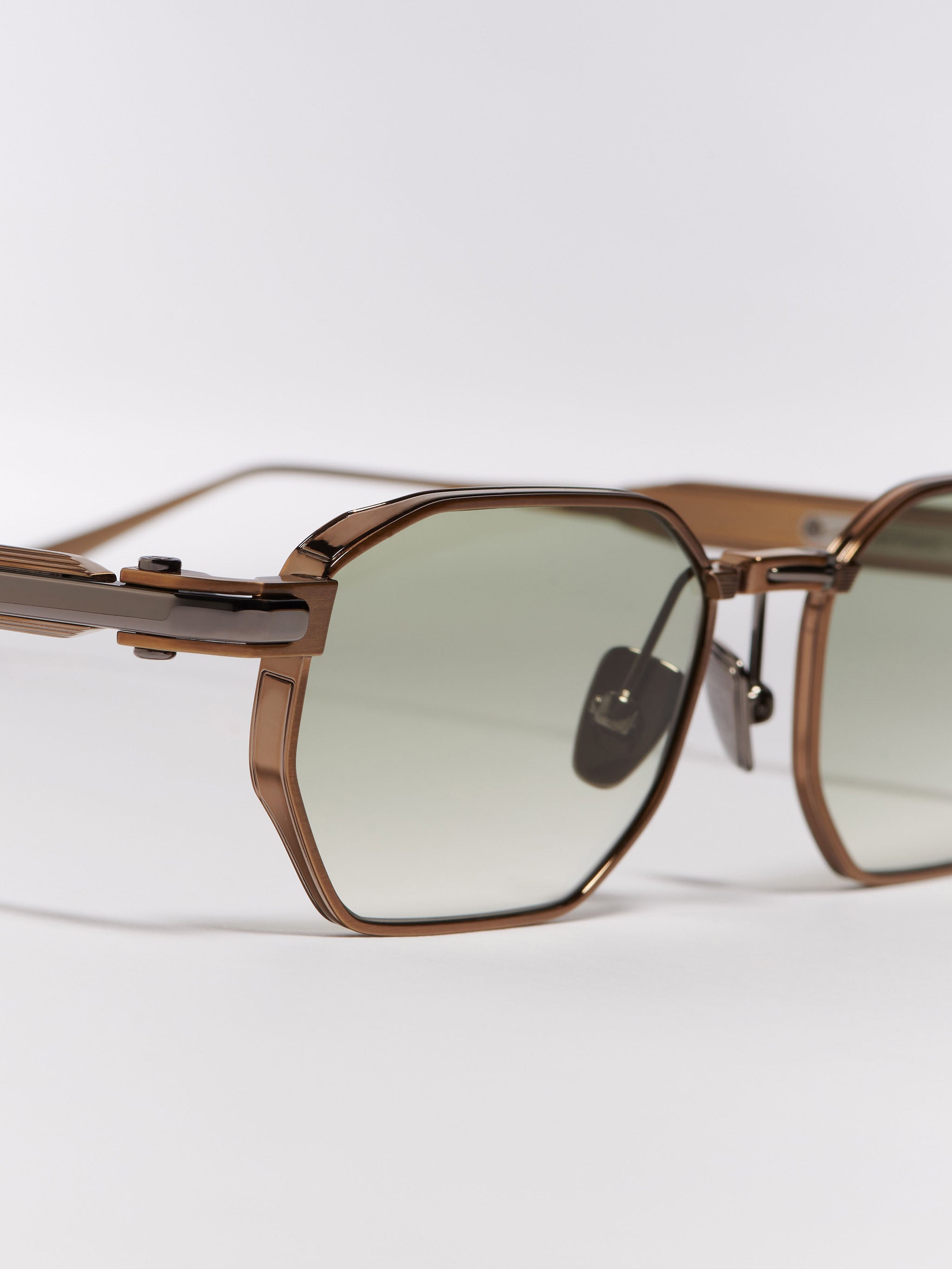 The temples extend seamlessly into sculpted metal end tips, conceived as a natural continuation of the architecture. With subtle variations in thickness and finely striated finishes, the temples highlight the distinctive character of the design.