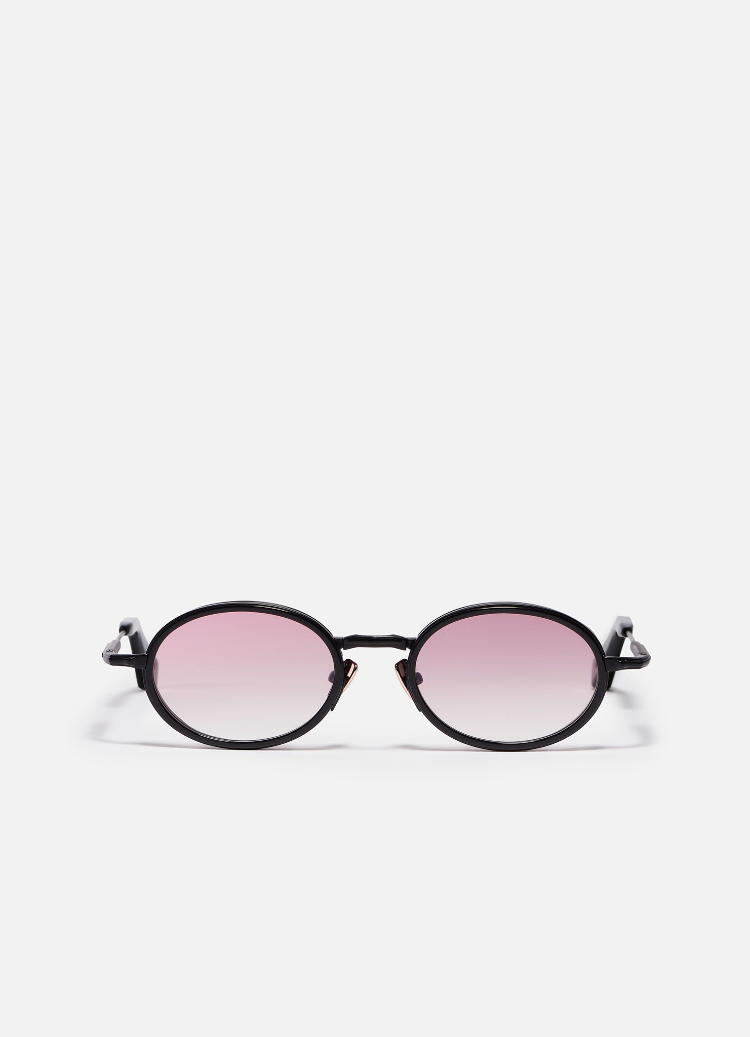 Unisex oval shaped frame combining a titanium corewere, metal details and acetate elements in a refined fusion of materials.